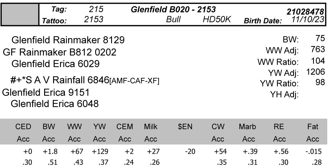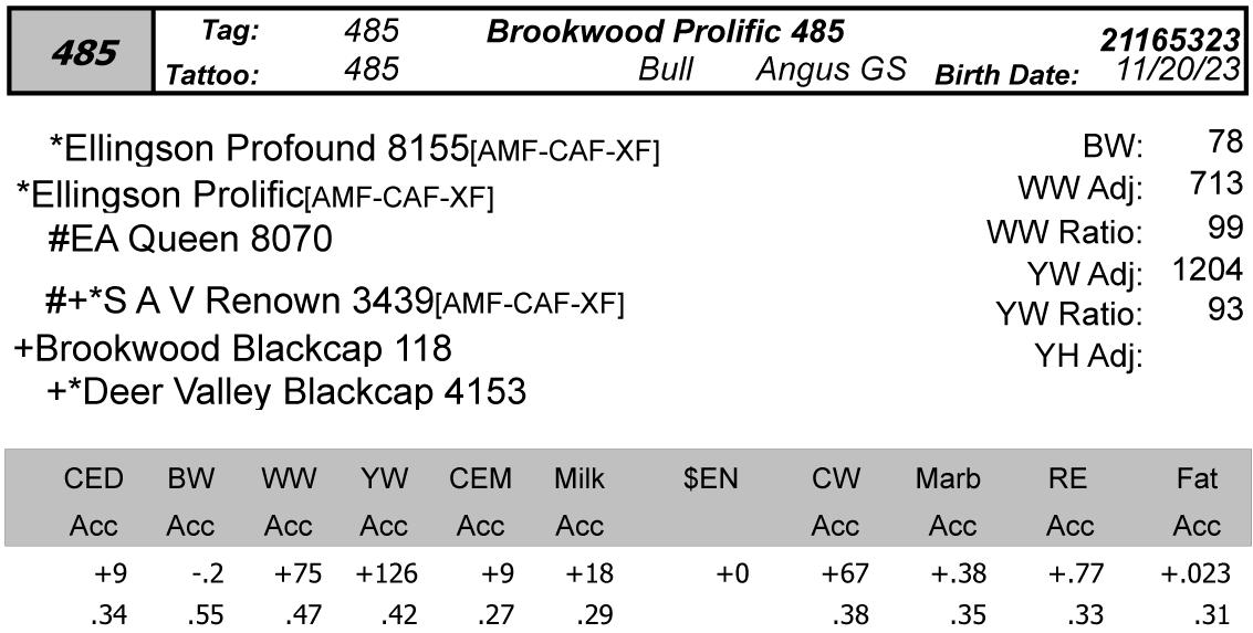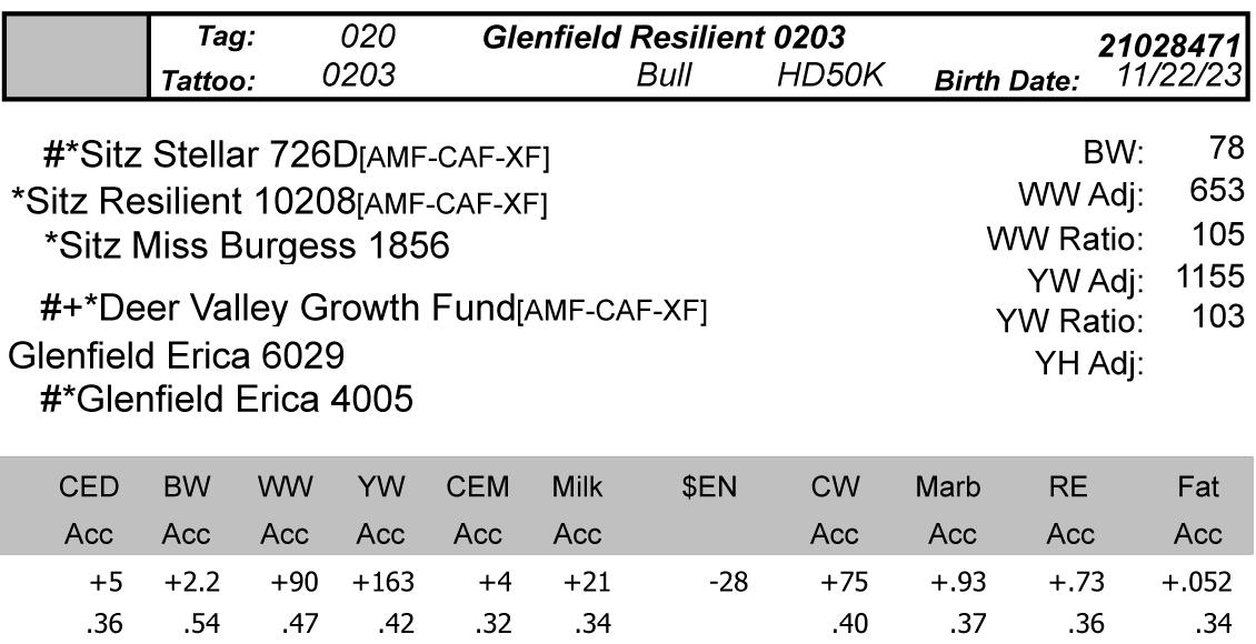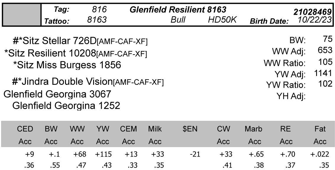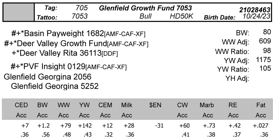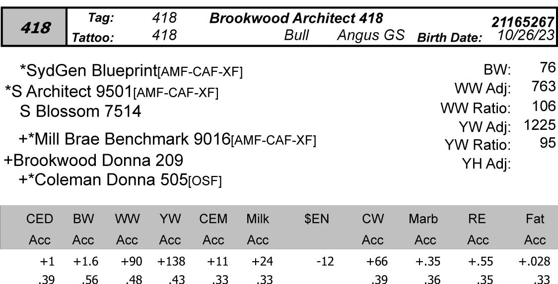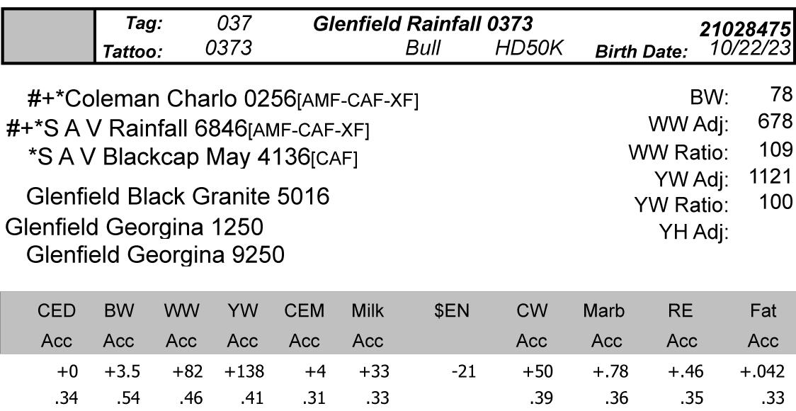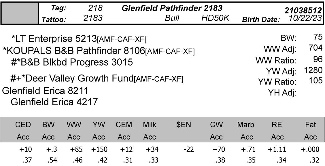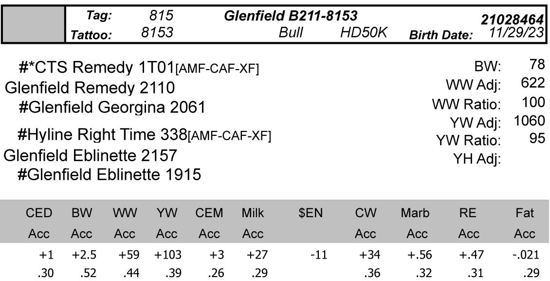 Certificates of registry on all purebred bulls will be furnished and transferred by the seller to the buyer at the seller’s expense. EPDs are accurate at time of catalog printing but are subject to change as additional data becomes available.