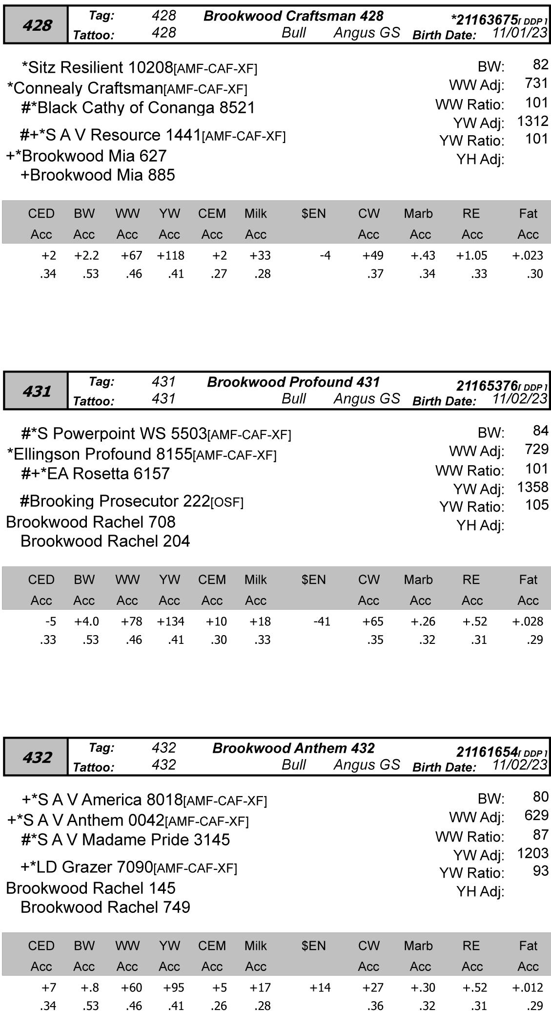 The bulls are available for viewing prior to and on sale day. Brookwood bulls will be located at their home location at the “red barn” and Glenfield bulls will be located at the former Hanover Shoe Factory field (sale day only). Load out will be available and is encouraged. Please contact the consignors to make arrangements and don’t hesitate to call if we can assist you in any way. We look forward to seeing you at this year’s sale and hope to continue fulfilling your genetic needs.