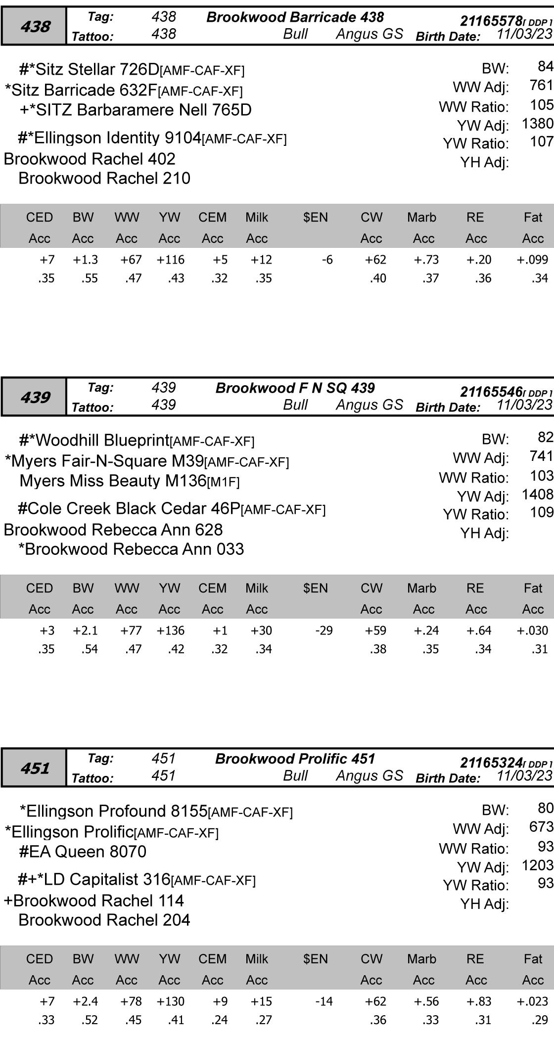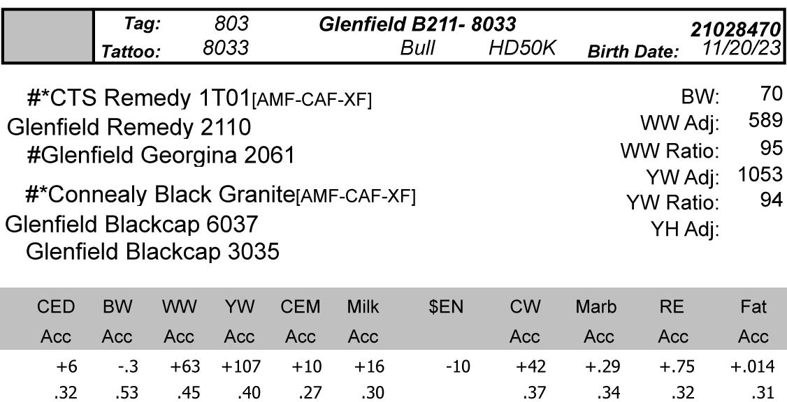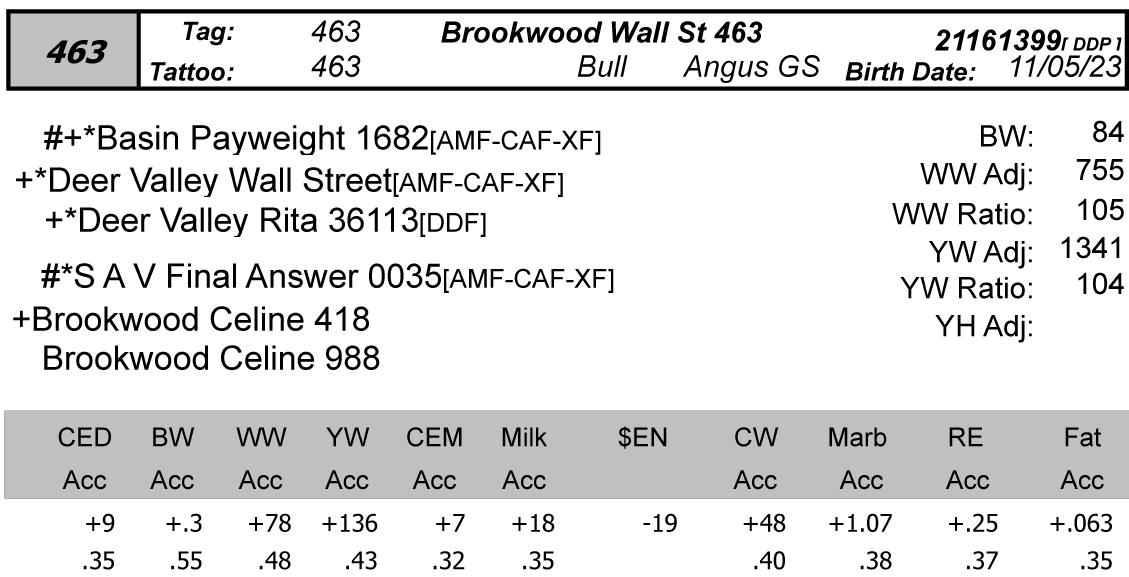 Terms of the sale are cash or approved check. Each bull will be sold to the highest bidder. The auctioneer will settle any disputes as to bids. Announcements from the auctioneer’s platform take precedence over any other information. Bulls must be paid for by the buyer before being released. Each bull will be at the buyer’s risk as soon as sold. The sale represents a contract between the buyer and seller. All claims should be directed between buyer and seller. Please keep this catalog for reference should you need to contact the seller in the future.