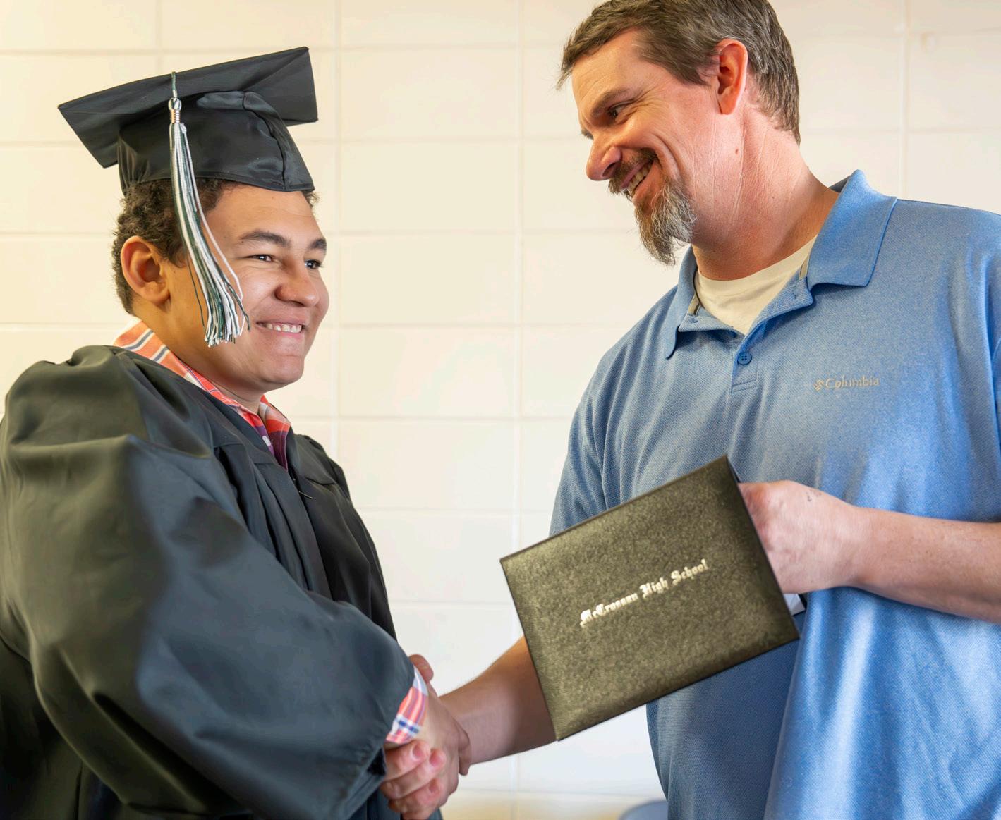• This year, we proudly celebrated the graduation of seven young men from our Moral Reconation Therapy (MRT) program, with an eighth soon to follow. MRT plays a crucial role in helping our youth develop better decision-making skills, strengthen their moral reasoning, and overcome negative behaviors. These graduates have made significant strides in their personal growth, and we are excited to see them continue on their journey toward brighter futures.