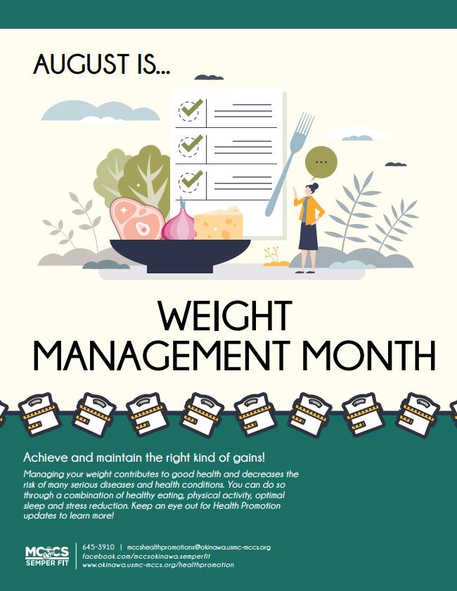 For more information, visit the Health Promotion webpage at okinawa.usmc-mccs.org/healthpromotion or find us on Facebook at MCCS Okinawa - Semper Fit!