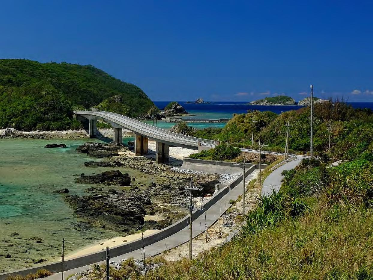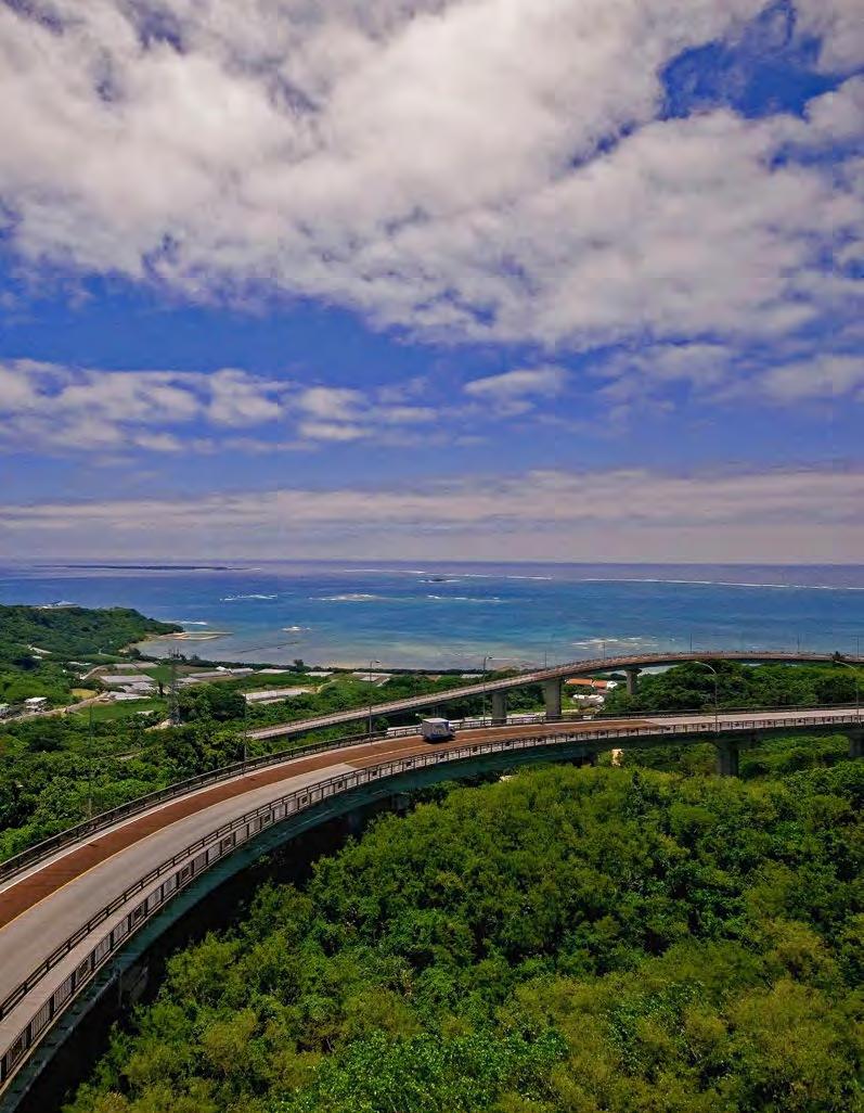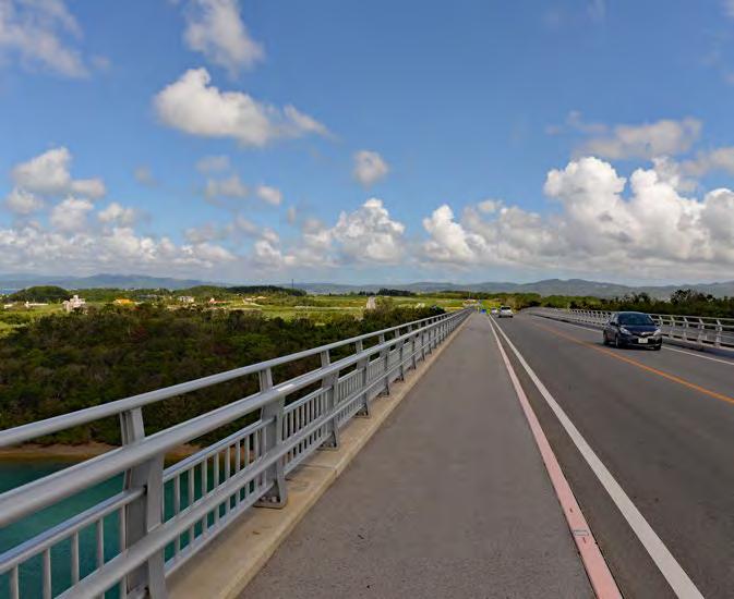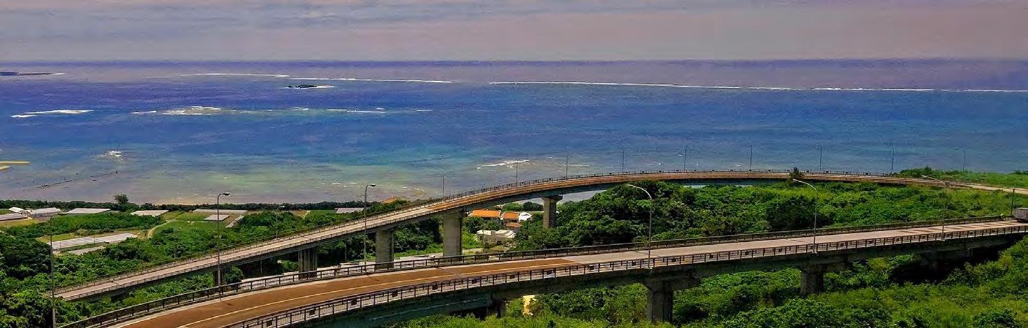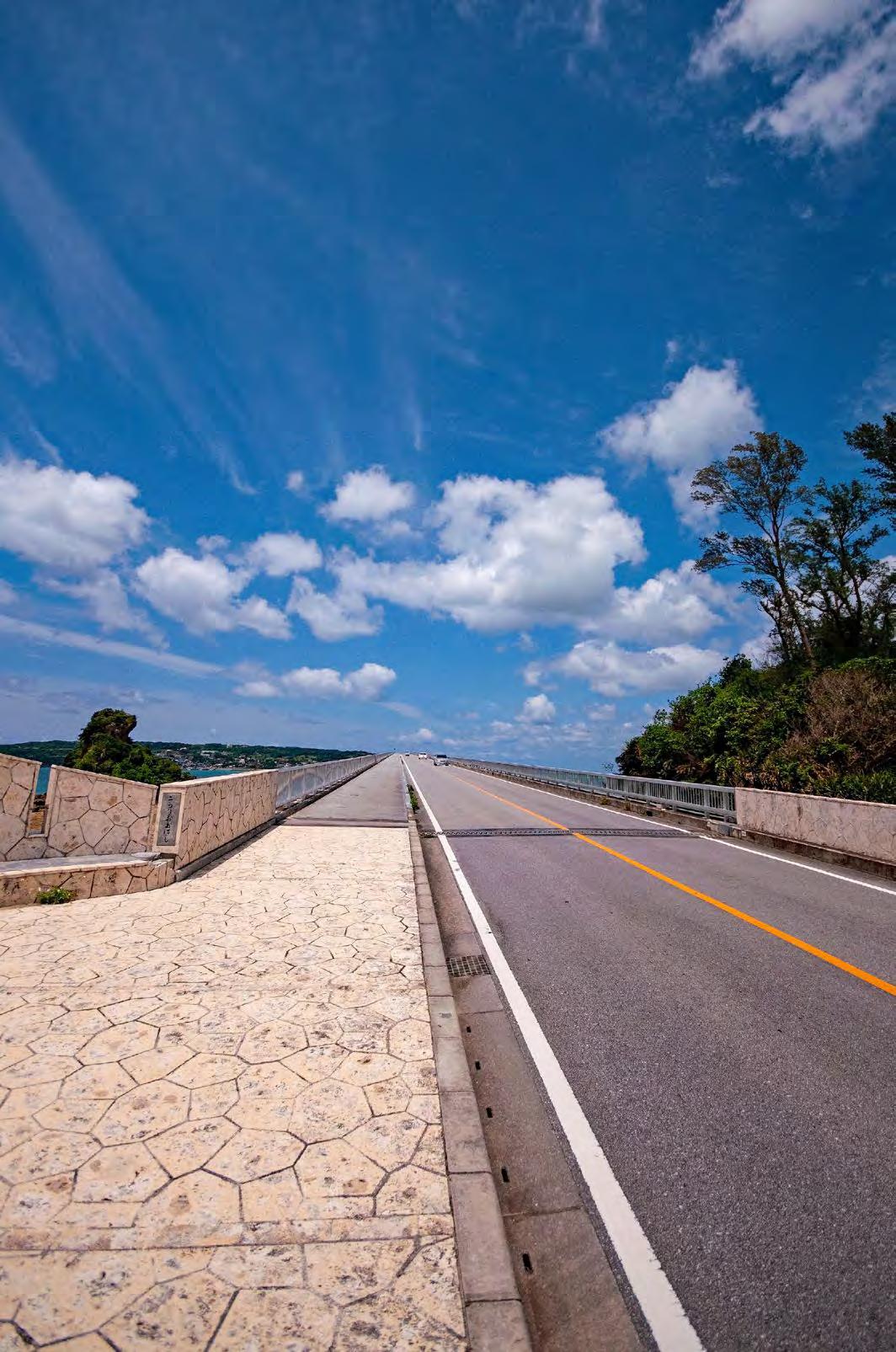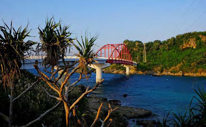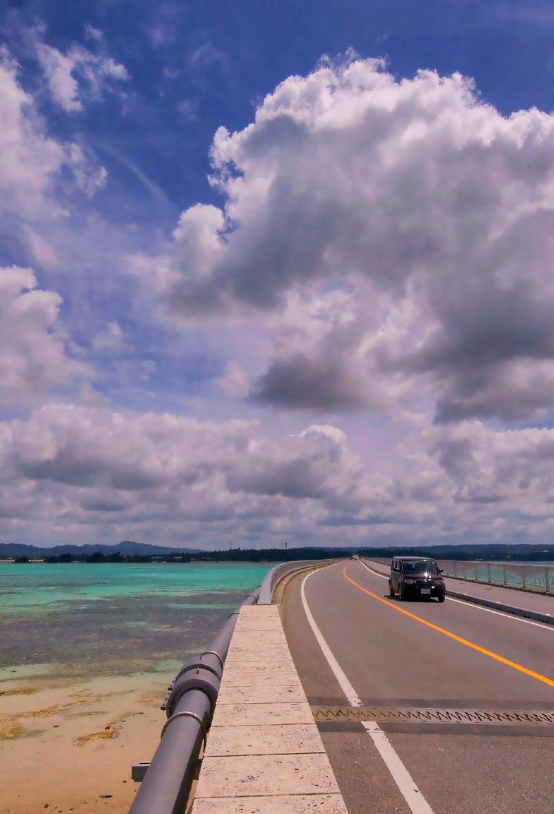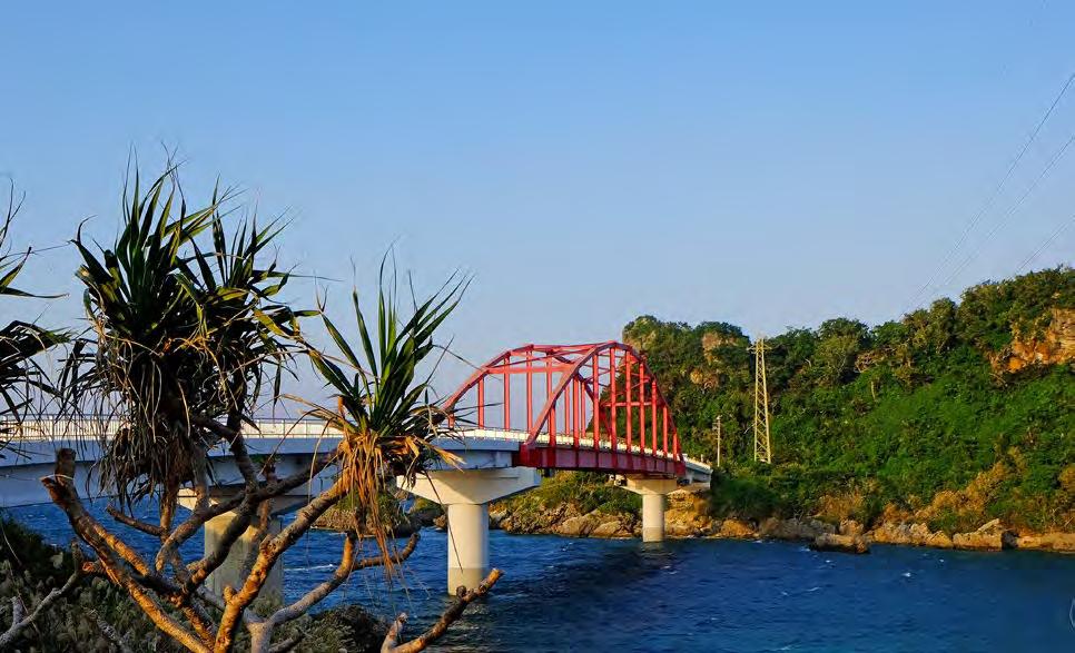 is also home to one of the island’s most breathtaking bridges—the 660m long Nirai Kanai. Named after the Okinawan word for “heaven,” the Nirai Kanai Bridge is even equipped with an observatory above it so that visitors can enjoy its complete splendor along with views of Kudaka and Kojima islands off the coast. ENJOYING AN AUTUMN DRIVE ON OKINAWA CHINEN PENINSULA & NIRAI KANAI BRIDGE TEXT AND PHOTOGRAPHY BY: Michael Daley | DESIGN BY: Jaclynn Mullally