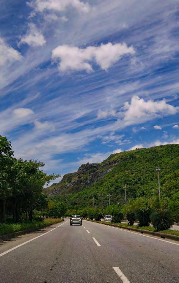 Before heading out, es pecially to more remote areas where cellphone reception can range from bad to non-exis tent, remember to plan your trip wisely by pack ing a couple of good maps and bring along a buddy to navigate as you drive. Also, before you hit the open road, don’t neglect your car; be sure to start your trip with a full tank of gas and, while you’re at it, check your oil and the air in your tires—it’s always better to be safe than sorry. Additionally, the more remote areas on Okinawa usually don’t accept US dollars (or credit cards), so stop by an ATM and get some yen for the expressway, admission fees, drinks and food. And, most importantly, inform a friend of your itinerary before leaving.