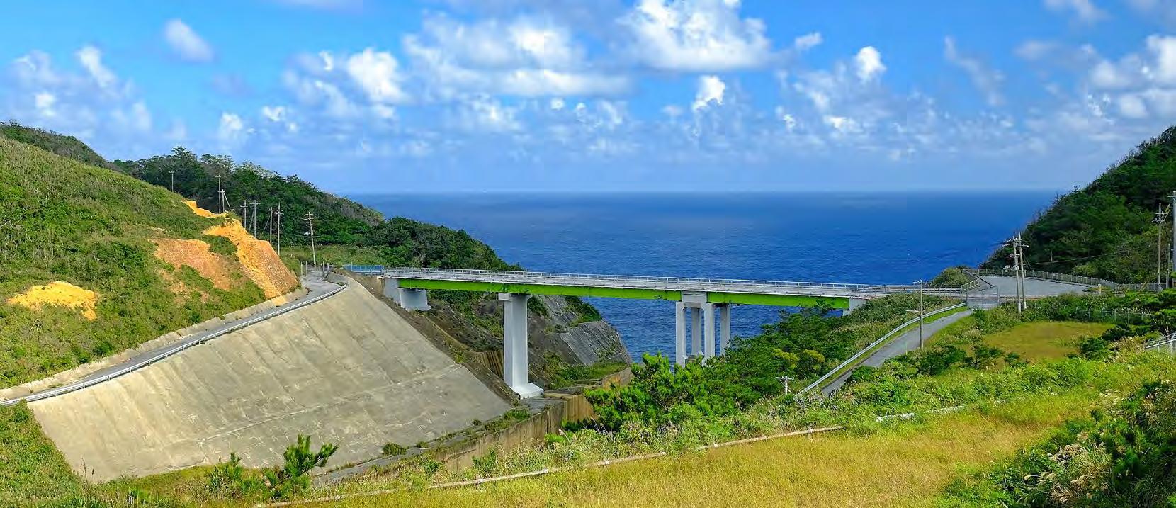 KOURI ISLAND BRIDGE (LEFT), IS VISIBLE FROM THE TOP OF WARUMI BRIDGE (ABOVE).