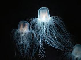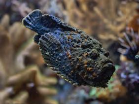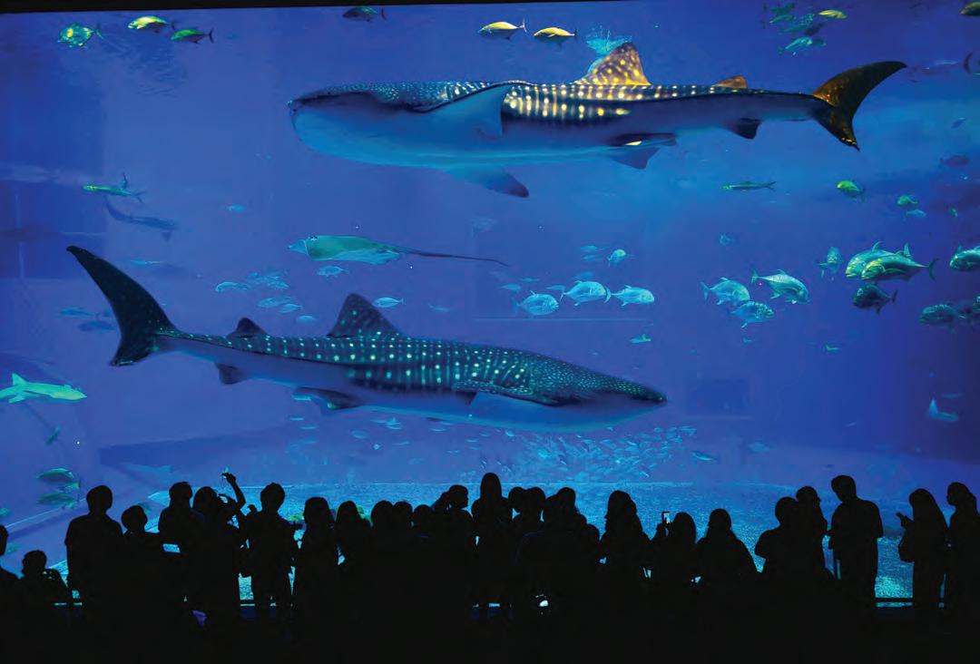 DMM Kariyushi Aquarium is unique in that it mixes both virtual and real sea creatures in a brand-new experience that the whole family will enjoy. Tis aquarium even ofers a phone app that you can download to help guide you through your journey. Te entire second foor of DMM Kariyushi Aquarium is home to freshwater fsh, reptiles, amphibians and more from a variety of diferent ecosystems. Upon descending to the frst foor, visitors are greeted by several tanks highlighting a dazzling variety of tropical fsh and coral ranging from pulse, orange cup and purple-tipped acropora corals to more mobile denizens such as clownfsh, gobies, founders, shrimp, lobsters, crabs, moray and garden eels, seahorses, cow fsh and more.