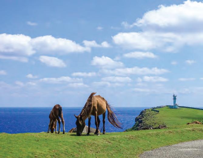 Kudaka is a tiny island with a circumference of only around 8 km. However, this tiny isle is the most sacred island in the prefecture. Tis is mostly because, according to folklore, Kudaka was believed to not only be the frst Ryukyu Island the goddess Amamikiyo created, but one she created to mirror the beauty of heaven. To this day, certain parts of the island are forbidden to men while others can only be entered by the highest-ranking noro (priestesses). In the center of the island lies a circular clearing where it is believed the gods subsequently descended. Not all areas of Kudaka are forbidden, however, and many areas are a diferent kind of “heaven on earth.” Afer a 15-minute ride on an express ferry, visitors can either choose to rent a bicycle (a wise choice) or hike to one of several beautiful beaches.