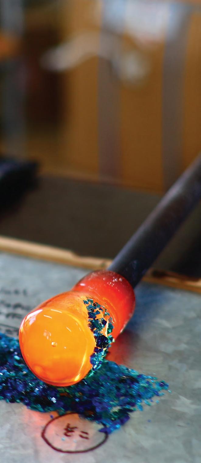 Just seeing the building that houses the Itoman kiln in full daylight is worth the trip itself—the Ryukyu Glass Factory is almost completely covered with rounded tiles made from multi-colored Ryukyu glass and painted pieces of Ryukyu Pottery. Inside the open-air factory, visitors can watch artisans create works of glass art. Also atached to the factory are a gif shop and a museum where visitors can view pieces created by legendary masters such as Koei Oshiro and Masao Tobaru.