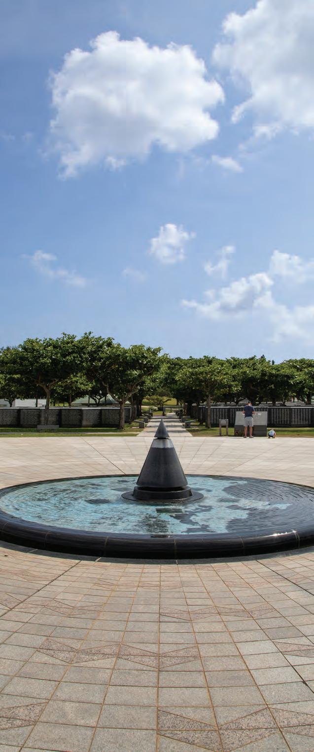 Okinawa Prefectural Peace Memorial Museum (a.k.a. Peace Memorial Park) is located in Mabuni, where one of the final confrontations of the Battle of Okinawa took place. During this battle, the Japanese commander, Lieutenant General Ushijima, and General Isamu Cho, the Chief of Staff of the Japanese 32 nd Army, committed ritual suicide at Mabuni Hill. Memorial towers and engraved stone monuments representing 31 prefectures and 10 groups, as well as the “Cornerstones of Peace,” the Okinawa Prefecture Peace Memorial Museum, the Peace Hall and the National Battle of Okinawa Victims’ Memorial are all present. MCCS Tours+ offers regular tours; visit okinawa.usmc-mccs. org/tours for the latest information and tour dates.