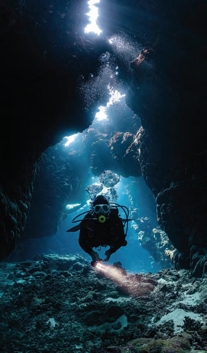 Located in the Okinawa World Teme Park, Gyokusendo is Japan’s secondlongest groto featuring an underground stream, a golden waterfall as well as over 900,000 stalactites and stalagmites. Tis theme park also features a crafs village, traditional dancing and artisans blowing glass, creating potery and weaving colorful textiles. MCCS Tours+ ofers regular tours; visit okinawa.usmc-mccs.org/tours for the latest information and tour dates.
