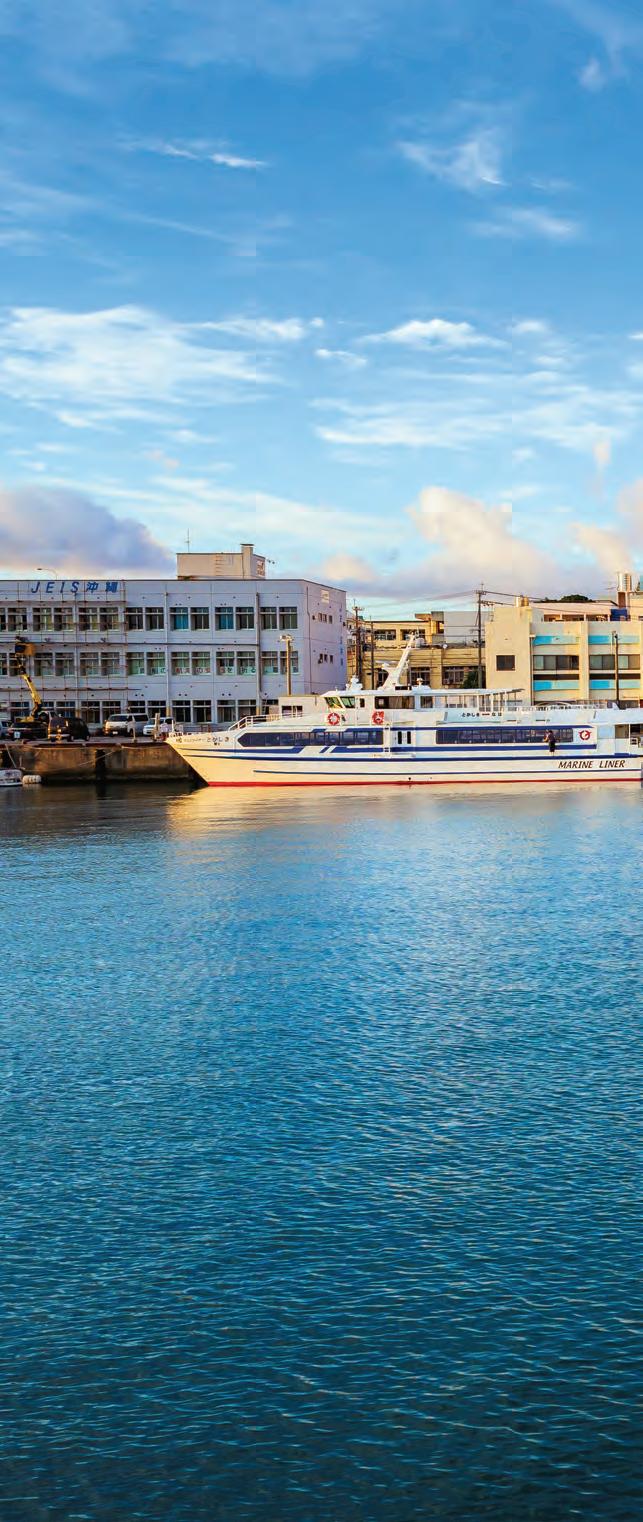Ferries bound for Aguni, Daito, Tokashiki, Kume, Tonaki, Zamami and Aka Islands depart from Naha’s Tomari Port. Te Minna and Ie Island ferries operate out of Motobu Port. Ferries bound for Izena, Yoron and Iheya Islands depart from Motobu’s Unten Port. Te ferry bound for Kudaka Island operates out of Chinen Village’s Azama Port and Naha Port. Lastly, Ishigaki Port is home to vessels that make runs to Hateruma, Iriomote, Taketomi and Yonaguni Islands. For updates on ferry schedules, call the Okinawa Convention & Visitors Bureau at 098-859-6123.