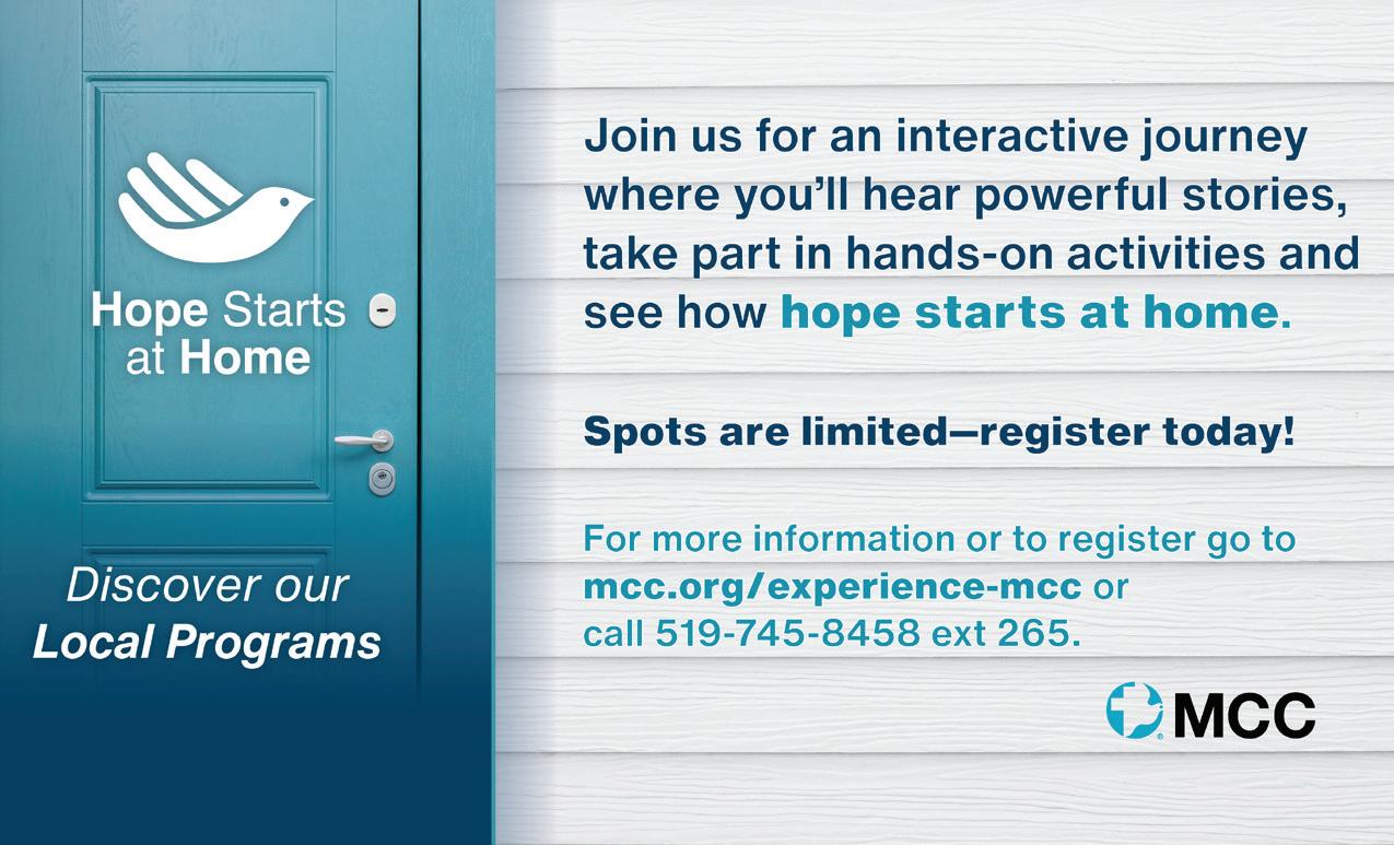 There will be posters around the MCC offices, shops, and programs for more information on how to use this service. If you are not sure where to find one, please contact Holly McClement, hollymcclement@mcco.ca 519-745-8458 x 366