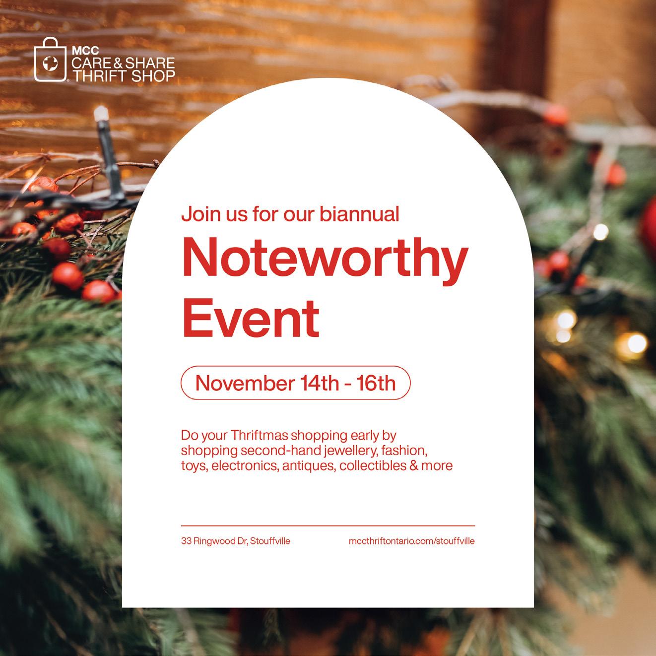 We will be hosting our Noteworthy Event from Thursday, November 14–Saturday, November 16. We are looking for volunteers to assist us with cash, monitoring the table and assisting customers. If you are available, please let Joel know.