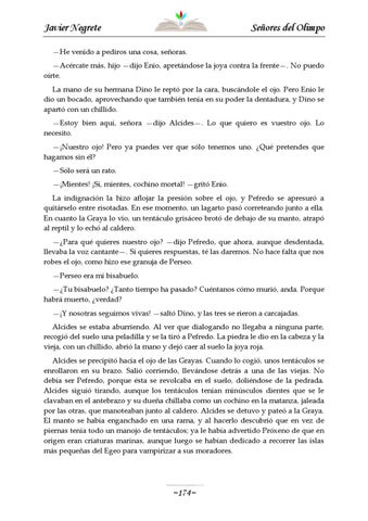 —He venido a pediros una cosa, señoras. —Acércate más, hijo —dijo Enio, apretándose la joya contra la frente—. No puedo oírte. La mano de su hermana Dino le reptó por la cara, buscándole el ojo. Pero Enio le dio un bocado, aprovechando que también tenía en su poder la dentadura, y Dino se apartó con un chillido. —Estoy bien aquí, señora —dijo Alcides—. Lo que quiero es vuestro ojo. Lo necesito. —¡Nuestro ojo! Pero ya puedes ver que sólo tenemos uno. ¿Qué pretendes que hagamos sin él? —Sólo será un rato. —¡Mientes! ¡Sí, mientes, cochino mortal! —gritó Enio. La indignación la hizo aflojar la presión sobre el ojo, y Pefredo se apresuró a quitárselo entre risotadas. En ese momento, un lagarto pasó correteando junto a ella. En cuanto la Graya lo vio, un tentáculo grisáceo brotó de debajo de su manto, atrapó al reptil y lo echó al caldero. —¿Para qué quieres nuestro ojo? —dijo Pefredo, que ahora, aunque desdentada, llevaba la voz cantante—. Si quieres respuestas, té las daremos. No hace falta que nos robes el ojo, como hizo ese granuja de Perseo. —Perseo era mi bisabuelo. —¿Tu bisabuelo? ¿Tanto tiempo ha pasado? Cuéntanos cómo murió, anda. Porque habrá muerto, ¿verdad? —¡Y nosotras seguimos vivas! —saltó Dino, y las tres se rieron a carcajadas. Alcides se estaba aburriendo. Al ver que dialogando no llegaba a ninguna parte, recogió del suelo una peladilla y se la tiró a Pefredo. La piedra le dio en la cabeza y la vieja, con un chillido, abrió la mano y dejó caer al suelo la joya roja. Alcides se precipitó hacia el ojo de las Grayas. Cuando lo cogió, unos tentáculos se enrollaron en su brazo. Salió corriendo, llevándose detrás a una de las viejas. No debía ser Pefredo, porque ésta se revolcaba en el suelo, doliéndose de la pedrada. Alcides siguió tirando, aunque los tentáculos tenían minúsculos dientes que se le clavaban en el antebrazo y su dueña chillaba como un cochino en la matanza, jaleada por las otras, que manoteaban junto al caldero. Alcides se detuvo y pateó a la Graya. El manto se había enganchado en una rama, y al hacerlo descubrió que en vez de piernas tenía todo un manojo de tentáculos; ya le había advertido Próxeno de que en origen eran criaturas marinas, aunque luego se habían dedicado a recorrer las islas más pequeñas del Egeo para vampirizar a sus moradores.