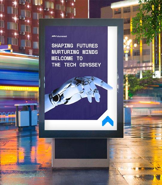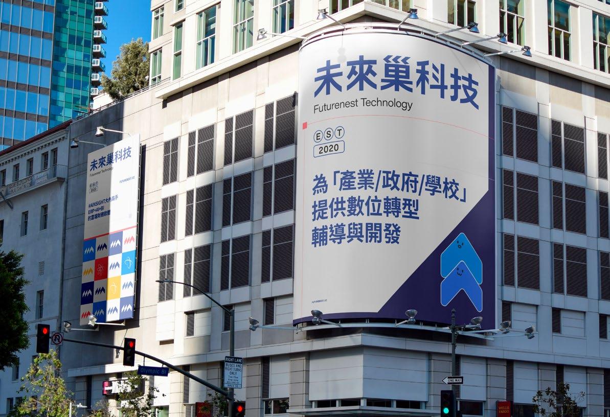" 未來巢 " 作為跨足科技 & 教育的新創科技公司,跳脫於大 家對於傳統的印象,從標準字的設計中,特別選用 " Space mono " 字體,凸顯工程師 / 設計師技術驅動的專業團隊。此