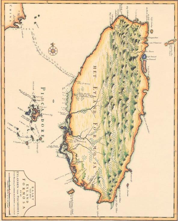 ▲ 葡萄牙人紀錄的台灣地圖(Eyland Formosa, 1724)。