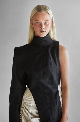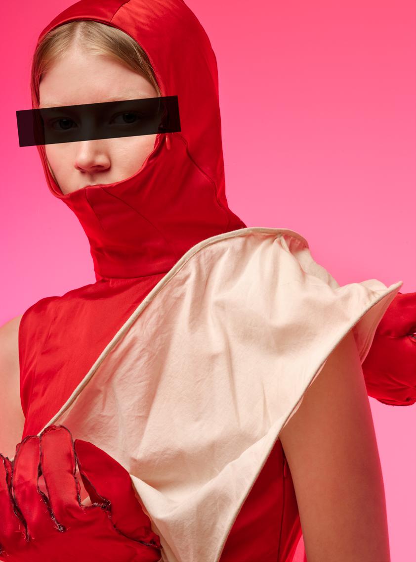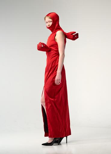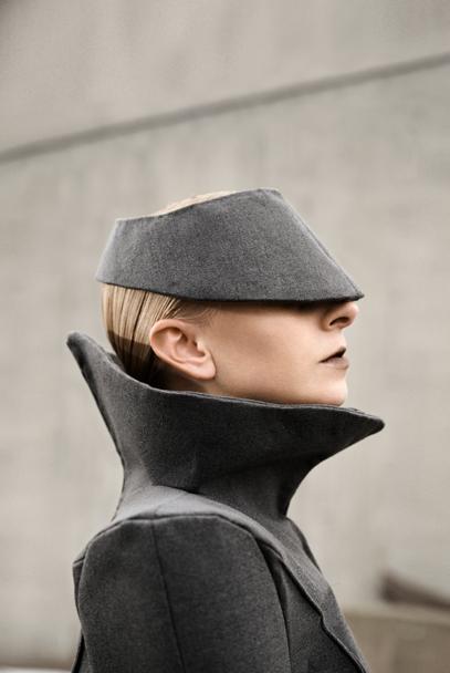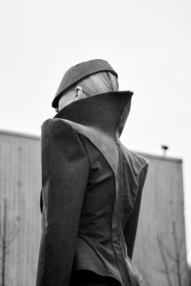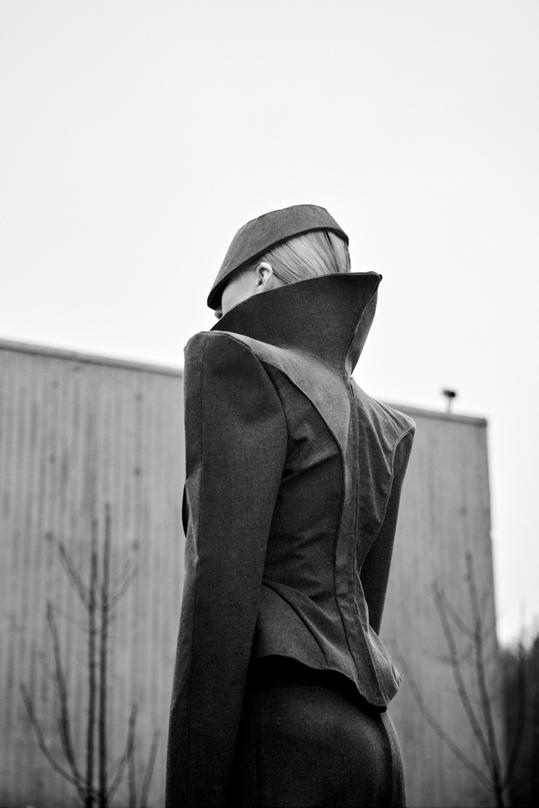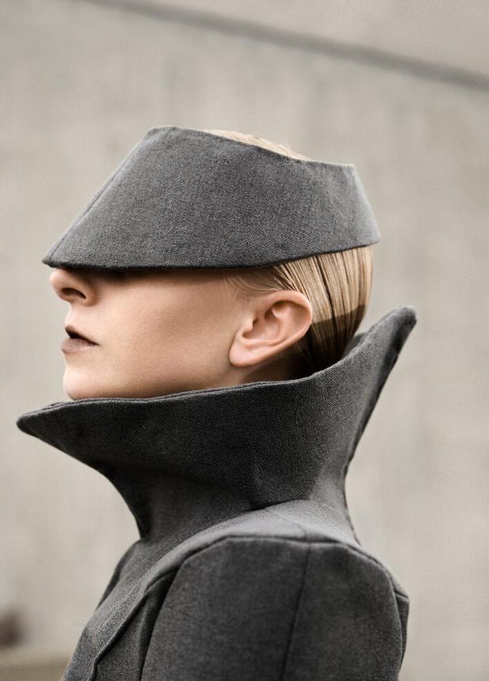 When you become unable to move or see? This becomes reality for the wearer of the design by Anna Hald. The concept builds upon the duality of being in control, and having it taken away. This is achieved and visualized by using rigid material and strict lines that force the wearer to stand in a totalitarian, unmovable state.