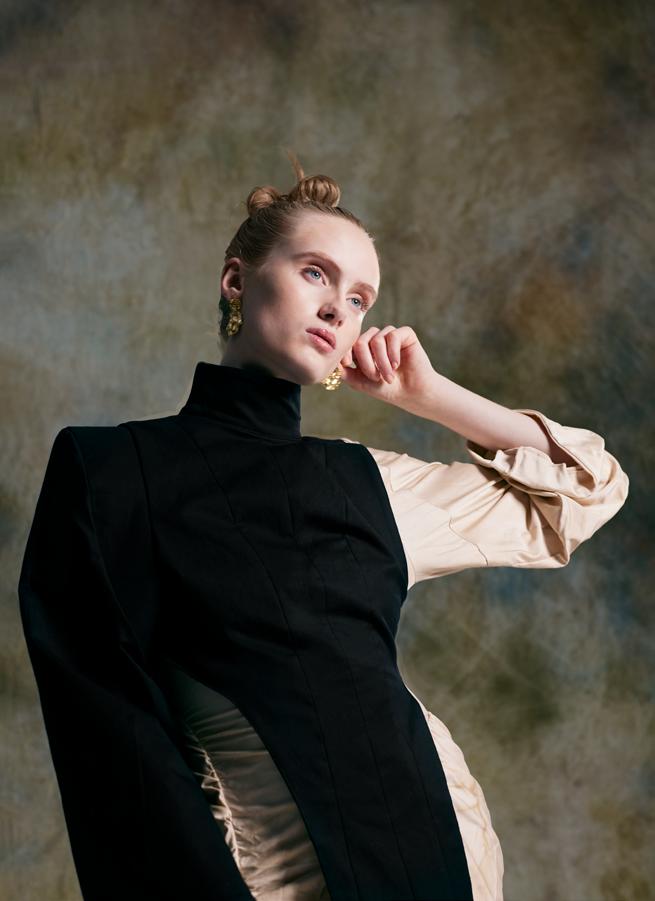 “.. MY DESIGN IS A SHOWPIECE AND IT PORTRAYS A PICTURE OF SOMETHING THAT IS CLEAN, CLINICAL, SHARP, GEOMETRICAL AND “PERFECT” (THE COLLAR).