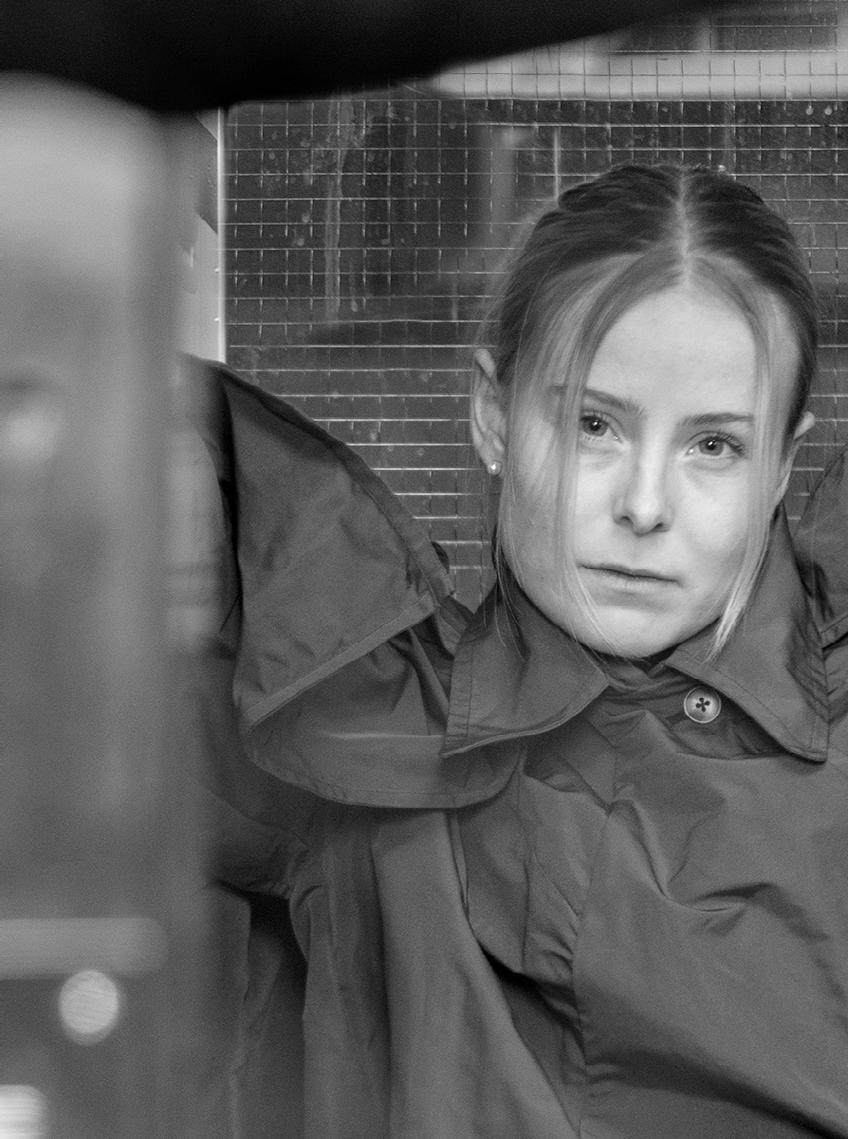 When I design, I like to be very playful, and I think it’s exciting to directly translate a feeling. I have tried to express in my design how it can feel walking home alone at night as a woman. You often have a feeling of having to “breathe”, “speak up”, or pretend you’re talking on the phone to make yourself feel safer.