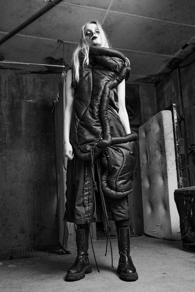 The designer Anna Hald has worked with how much control she can incorpurate in the garment, and with that how much control she can deprive the person wearing it.