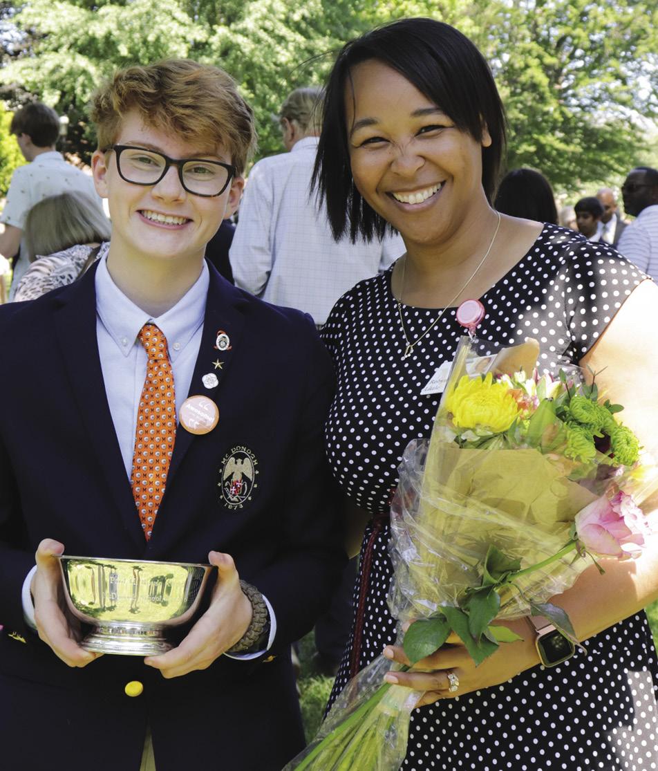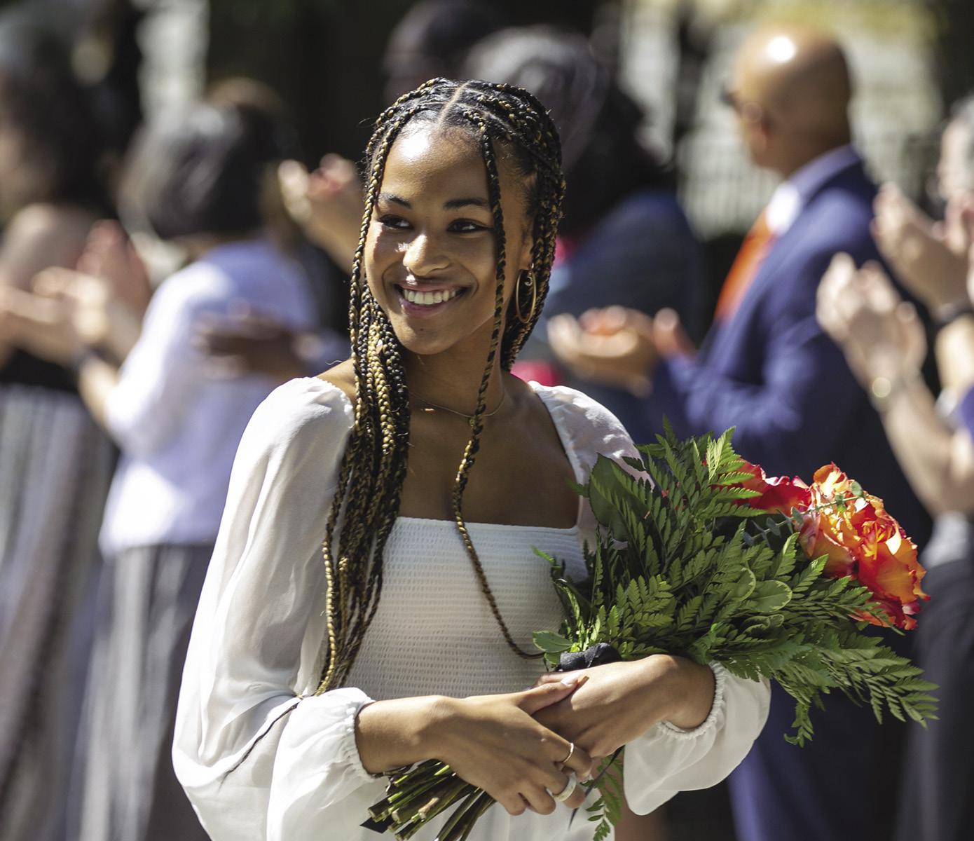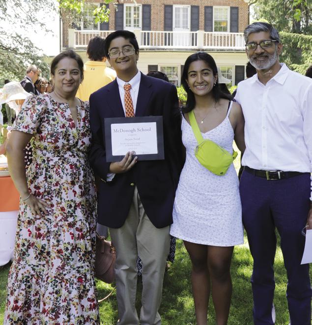 Boosted by his words, the Class of 2022 moved to Tagart Chapel where they received boutonnieres and bouquets of orange roses. Then, one at a time, they stepped through the chapel doors to the applause of faculty members and proceeded down the hill to Childs Memorial Terrace for the Commencement Exercises. Following the presentation of awards, Senior Class President Sydney Smith introduced Senior Speaker Josh Gonzalez ’22. Josh reminded his classmates that they should leave campus with no regrets but instead focus on all that they experienced and accomplished during their time at McDonogh.