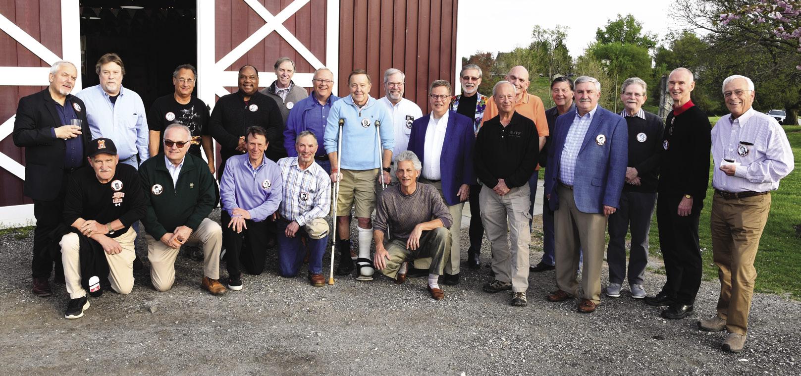 CLASS OF 1972 50TH REUNION Front row, from left: Butch Maisel, Wally Boston, Neil Cohen, Mark Beck, and Jon Aaron; second row, from left: Jeff Levin, Scott Beasley, Steve Mallis, Nollie Wood, Ken Herzl-Betz, Doug Sachse, Scott Spier, John Steinberg, and Terry Victor; back row, from left: Marc Rosen, Bob Sullivan, Bob Lowman, Bremen Trail, Hugh Sisson, Roger Weinberg, Dave Carr, and Hurst Hessey.