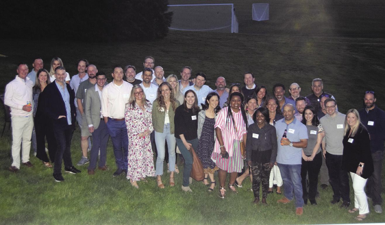 Susie Ruksznis Antonelli, Brian Antonelli, and Jordan Steller; second row, from left: Aparna Joshi, Torria Ellis-Dugar, Lori Sheitel Baylin, Alexis Seth, Britta Gustafson Richardson, Laura Holmes-Binetti, Amy Yacko, Andy Segall, and Regan Kreitzer La Testa; third row, from left: Andrew Gormley, Stephanie Hershkovitz, Timmi Ronis Brenneman, Clare Flynn-Avallone, Shelly Seaman, Lori Carter Vassor, Heather Johnson Ross, Nia Fenner Thornton, JJ Miller, Ayinde Stewart, Jeremy Carpenter, Jodi Bekman Buchman, Ashlea Howard Brown, Jean Shin, Karen Gray, Greg Bartman, and Eddie Ahn; back row, from left: Steve Mitchell, Emir Aziz, Eric Posner, Bryan Thanner, Steven McCarther, Marc Brooks, Bob Rutkowski, and David Pitt.