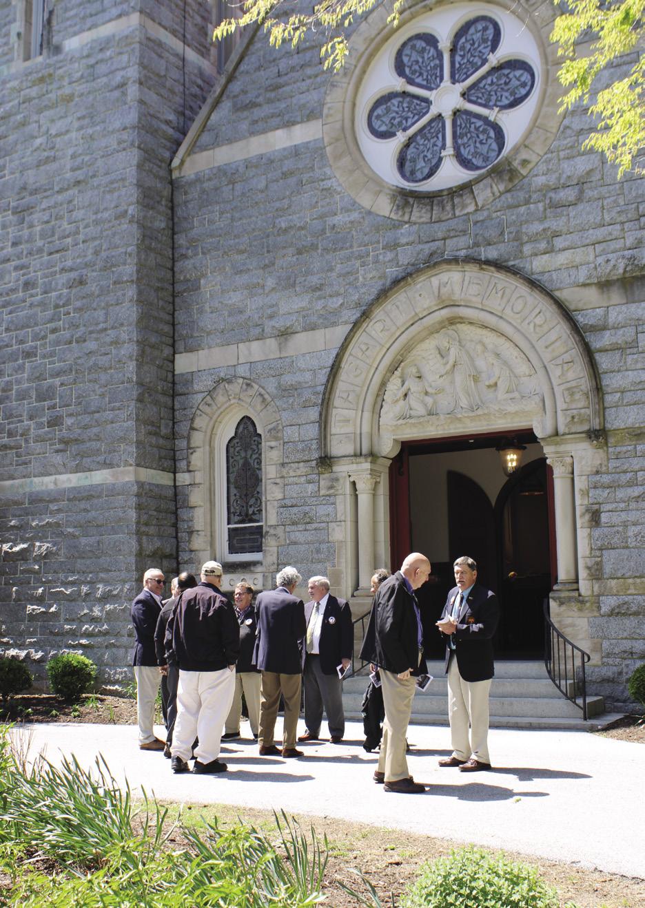 CLASS OF 1977 45TH REUNION Front row, from left: Donna Betz Meilman, Stewart Witter, Perry Stewart, Leslie Mallon, Jeff Dudley, Shawn Chinn, Konrad Berk, Kevin Sayers, and Eileen Flynn Toohey; second row, from left: Rob Smoot, Bob Heldrich, Steve Mullinix, Brian Doub, Mark Connolly, Tucker White, Bob Curley, Christian Holljes, Tom Hood, Rich Fleury, John Rogers, John Kemp, Lon Engel, and John Jeppi.