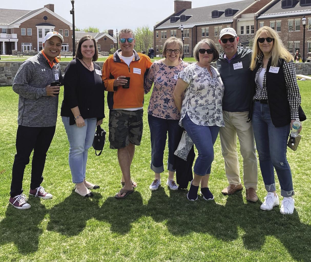 CLASS OF 1987 35TH REUNION Front row, from left: Kenny Klaff, Dave Farace, Junjie Pio Roda, John Fahey, Ben Crabbs, and Ted Peddy; second row, from left: Matt Schlossberg, Liz Graham Pickus, Stephanie Shoumer Kleiser, Mike Snyder, Steve Davalli, Larry Greenberg, Melissa Broadbent Alecce, Colleen Anderson, Amy Parks Cunneen, Jennifer Anderson Ely, and Marsha Handy; back row, from left: Al Olson, Ray Faust, Steve Pursley, Jeremy Sigler, Stacie Ludwig Dowling, Pete Ward, Lissa Lareau Caltrider, Chrissy Bielak Crabbs, Anne Thacker Sarazin, and Litsa Coroneos Wethern.