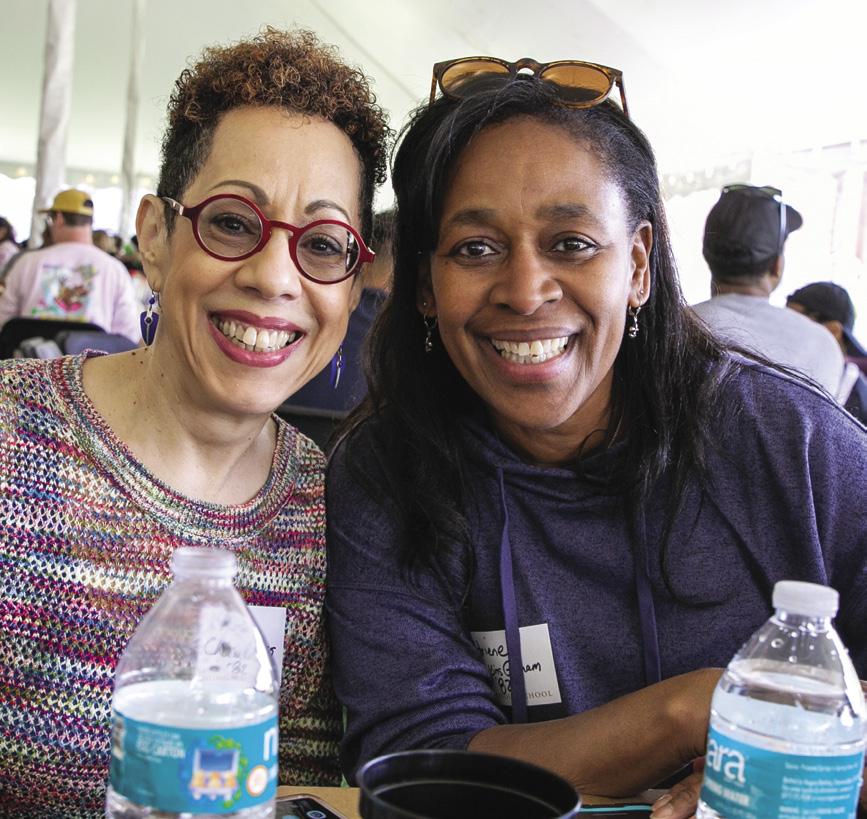 CLASS OF 1982 40TH REUNION Front row, from left: Ridge Hardy, Don Grider, Julie Beasley Schaefer, Margot Lambros, Betsy Will Thropp, Terri Lattanze Gordon; Barbara Scotland, Brenda DeVenecia Cawley, Kim Chambers, Norah Gutberlet Worthington, Bill Yerman, Stephanie Cochran Clancy, Will Howard, and Andy Stone; back row, from left: Jeff Cochran, Mike Epstein, Mark Berman, Steve Schramm, Terry Booker, Dave Owens, Dave Daneman, Adriene Dawkins Graham, David Rothschild, Paul Christensen, Curt Cornwell, Rich Kopilnick, Pitts Robinson, Norm Smith, Nick Cibel, Ned Insley, and Ged Dickersin.