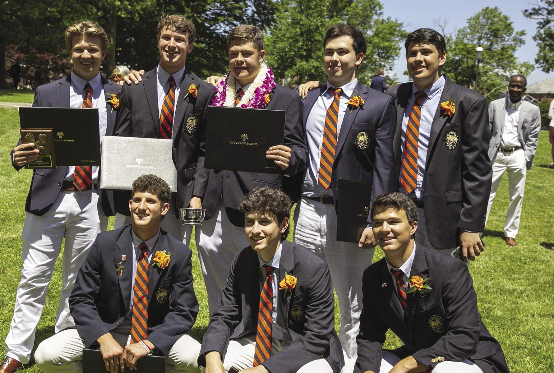 CLASS OF 2017 5TH REUNION Front row, from left: Archer Senft, Riley Thacker, Connor Motsko, and Paul DiPino; second row, from left: Nolan Munafo, Price Campbell, Maddie Ebner, Samira Chatrathi, Emma Donahue, Catie May, and Kellyn Rogers; third row, from left: D’Arcy Carlson, Elizabeth Walton, Randi Rossi, Kayla Koski, Peyton Barranco, and Ian Malinow; back row, from left: Jared Blavatt, Michael Abernathy, Dennis Focas, Lauren Lehmann, and Cameron Ahern.