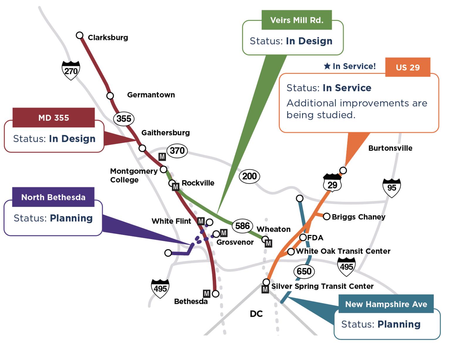 Expanding transit connections through future Flash Bus Rapid Transit and the Great Seneca Transit Network