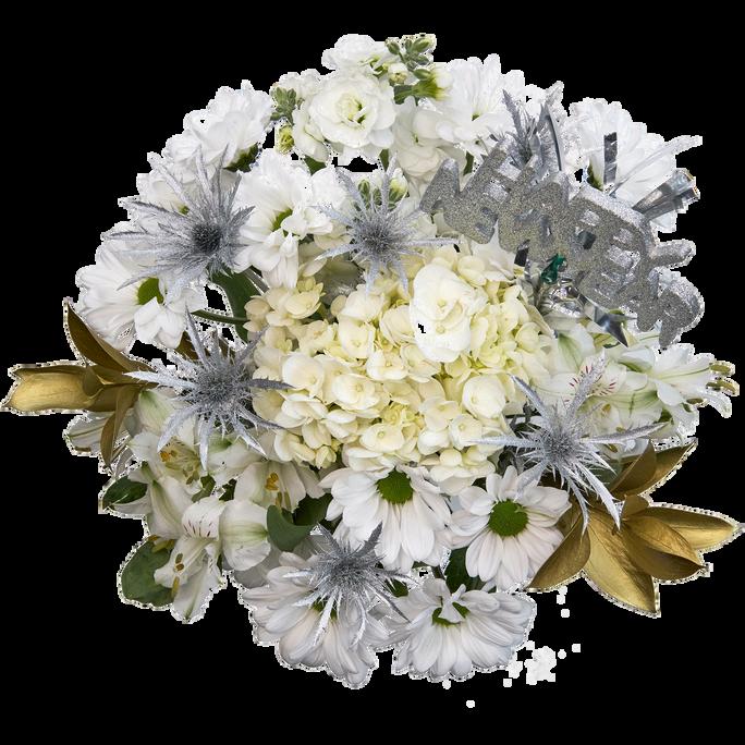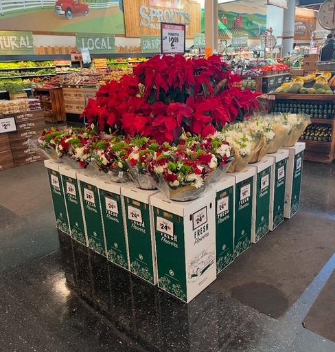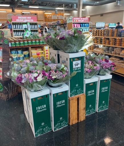 Snowy Pines will ship in a special 4-bucket display shipper Each shipper will contain 2 Snowy Pines bouquets ($54 99 each) and 12 All Wrapped Up Bouquets ($14 99 each)