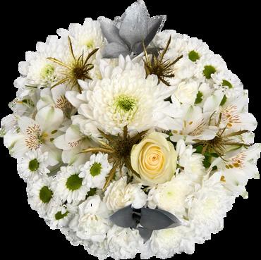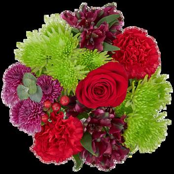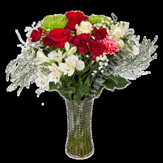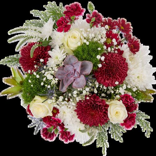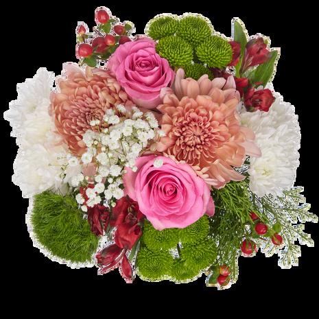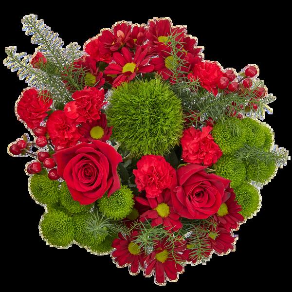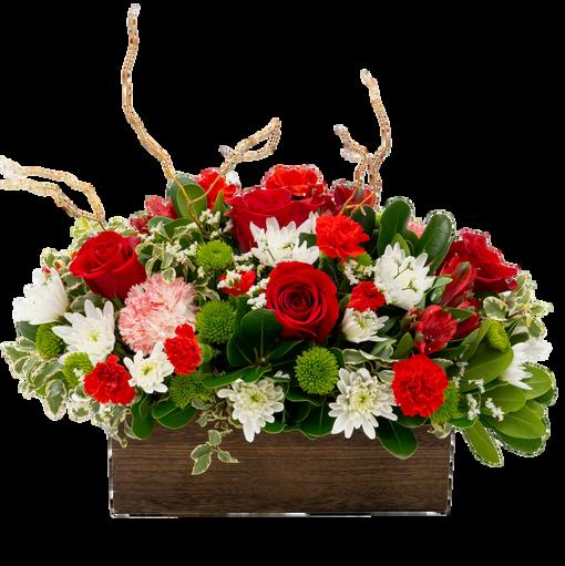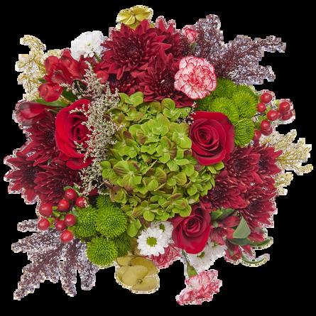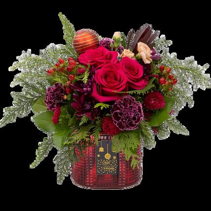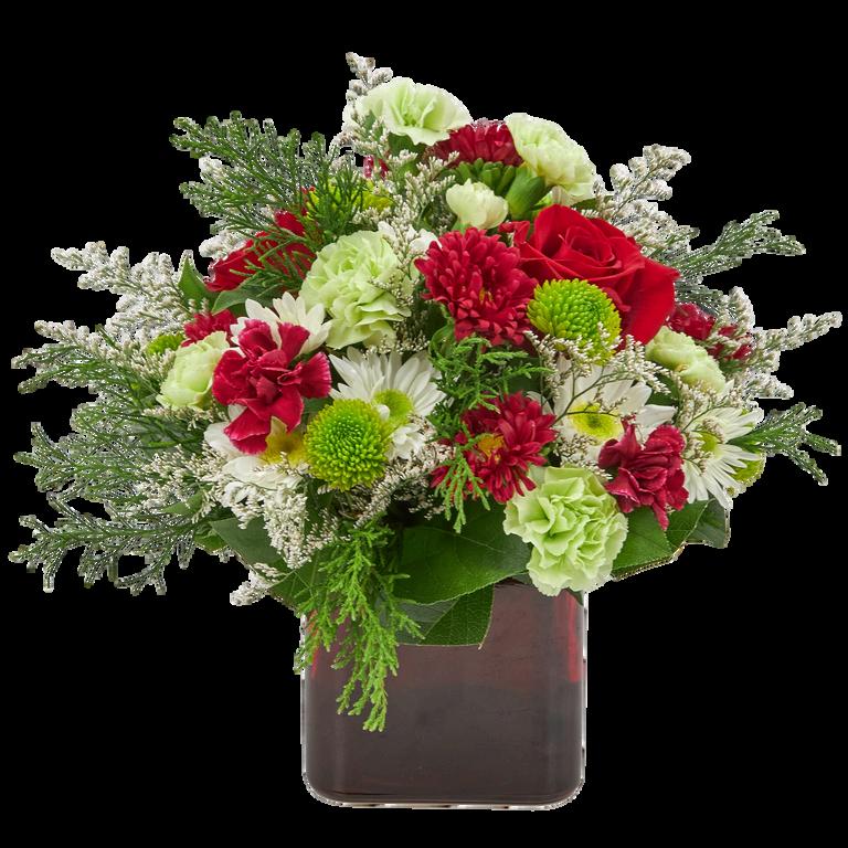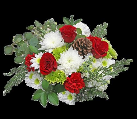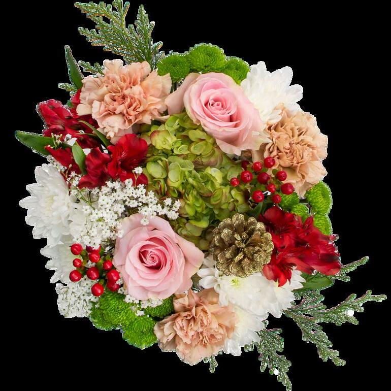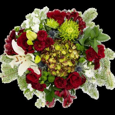 Encourage shoppers to consider Snowy Pines Bouquet as an ideal centerpiece. The bouquet’s size and beautiful colors make it a perfect addition to any holiday table.