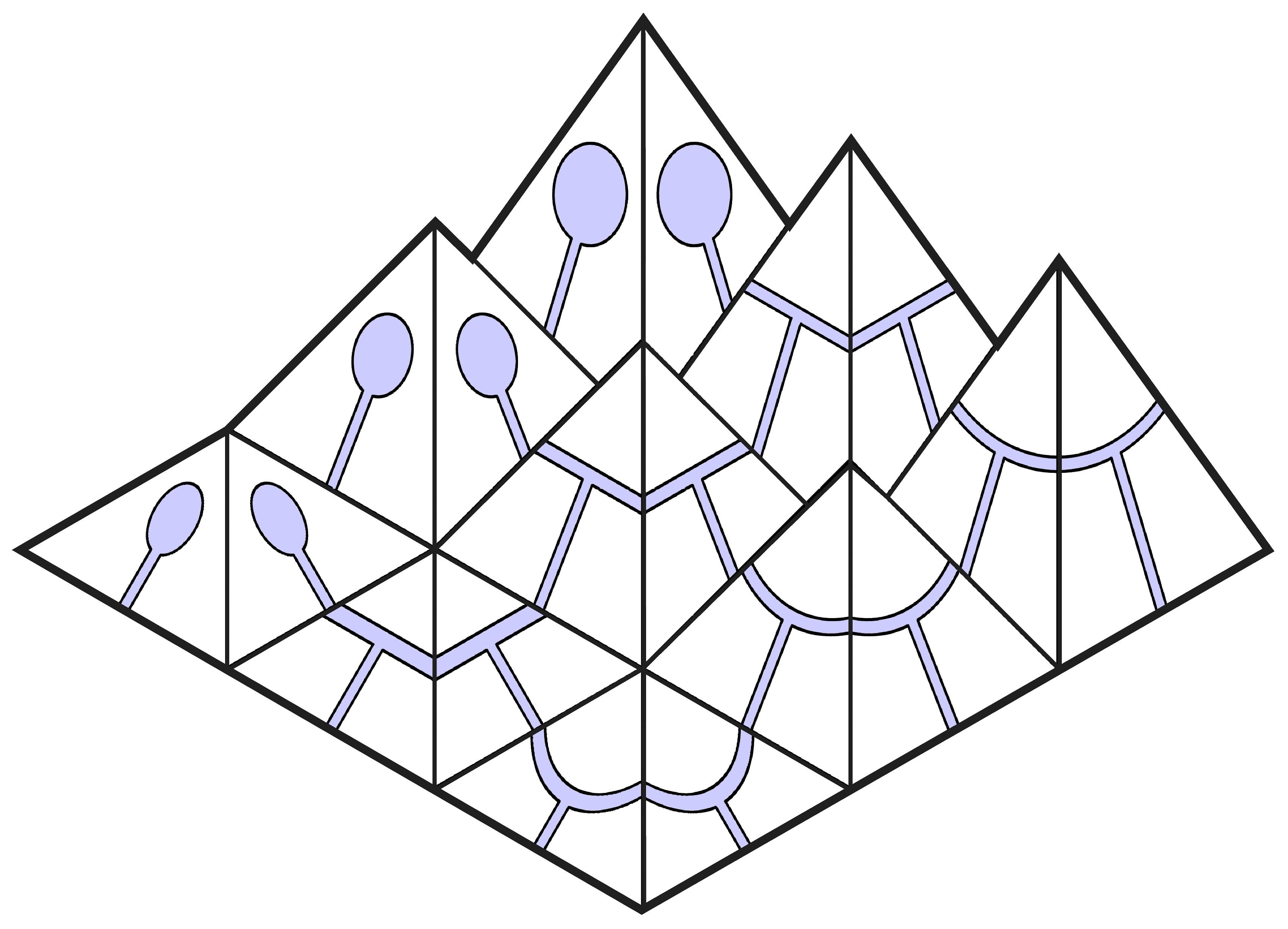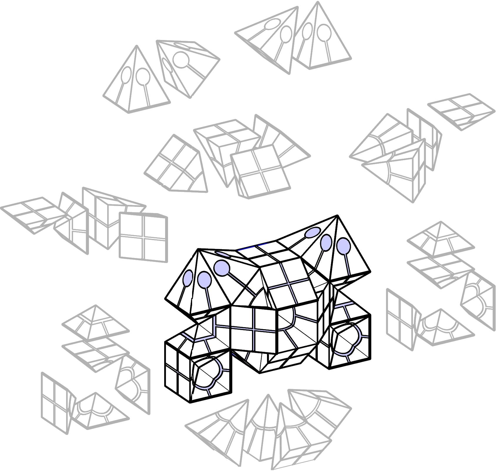 3 designs are applied to the shapes creating 9 unique pyramids that can be put together in various ways.