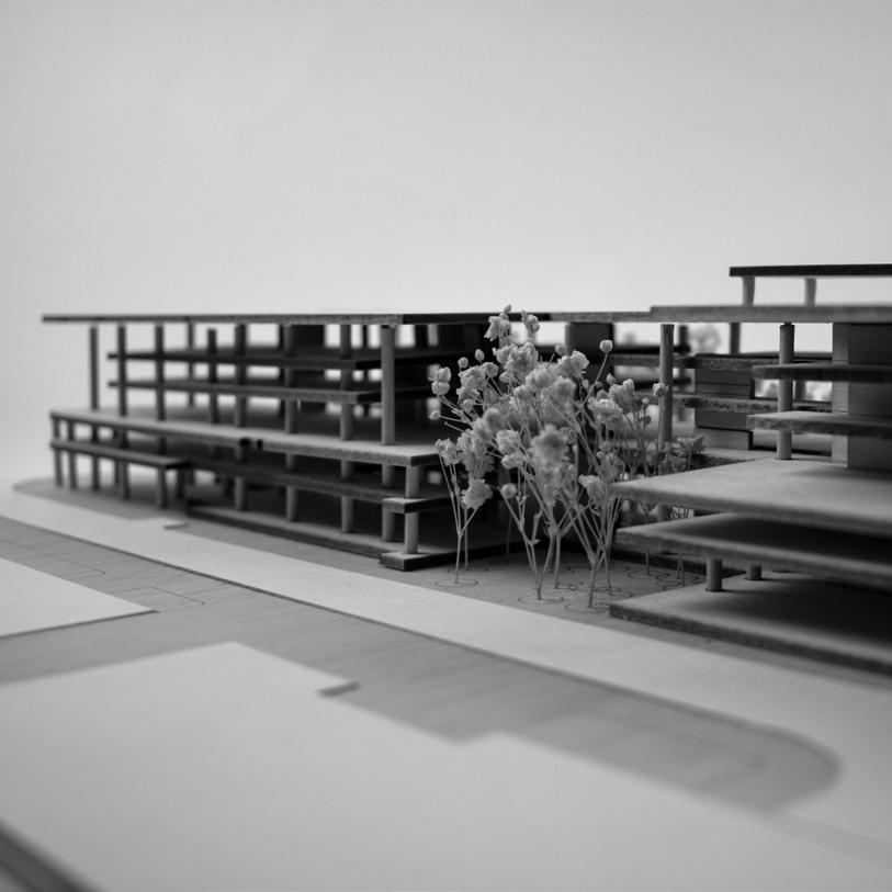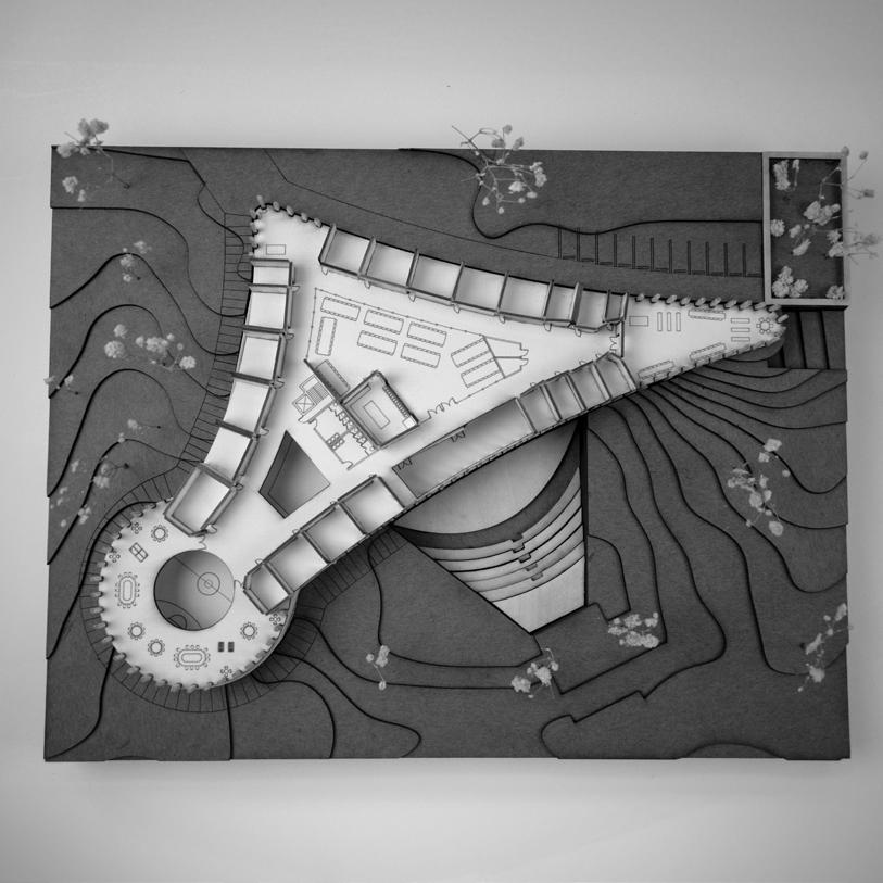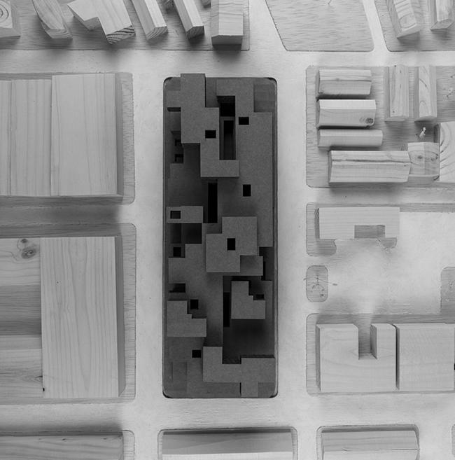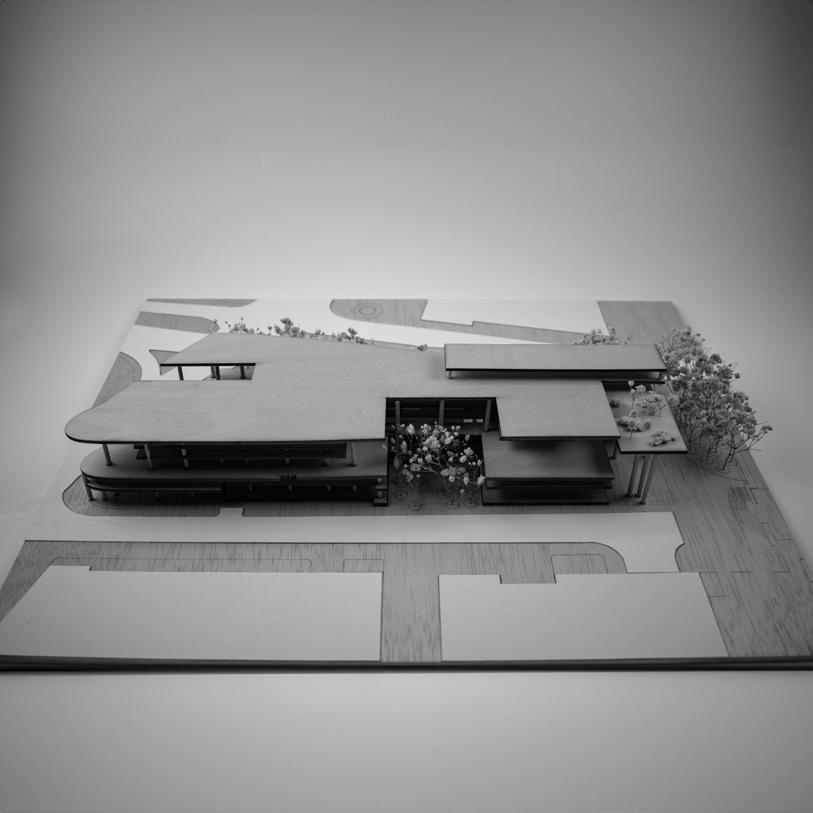 Study model as a tool for understanding pedestrian entrances and building views to context.