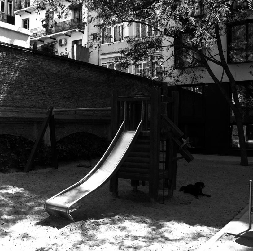 Playground & dog park within the interior of the Jardins de Maria Matilde Almendros.