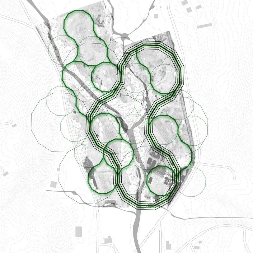 Artery derivation across the site. The shape is derived from wood material properties and avoiding cuts on-site.
