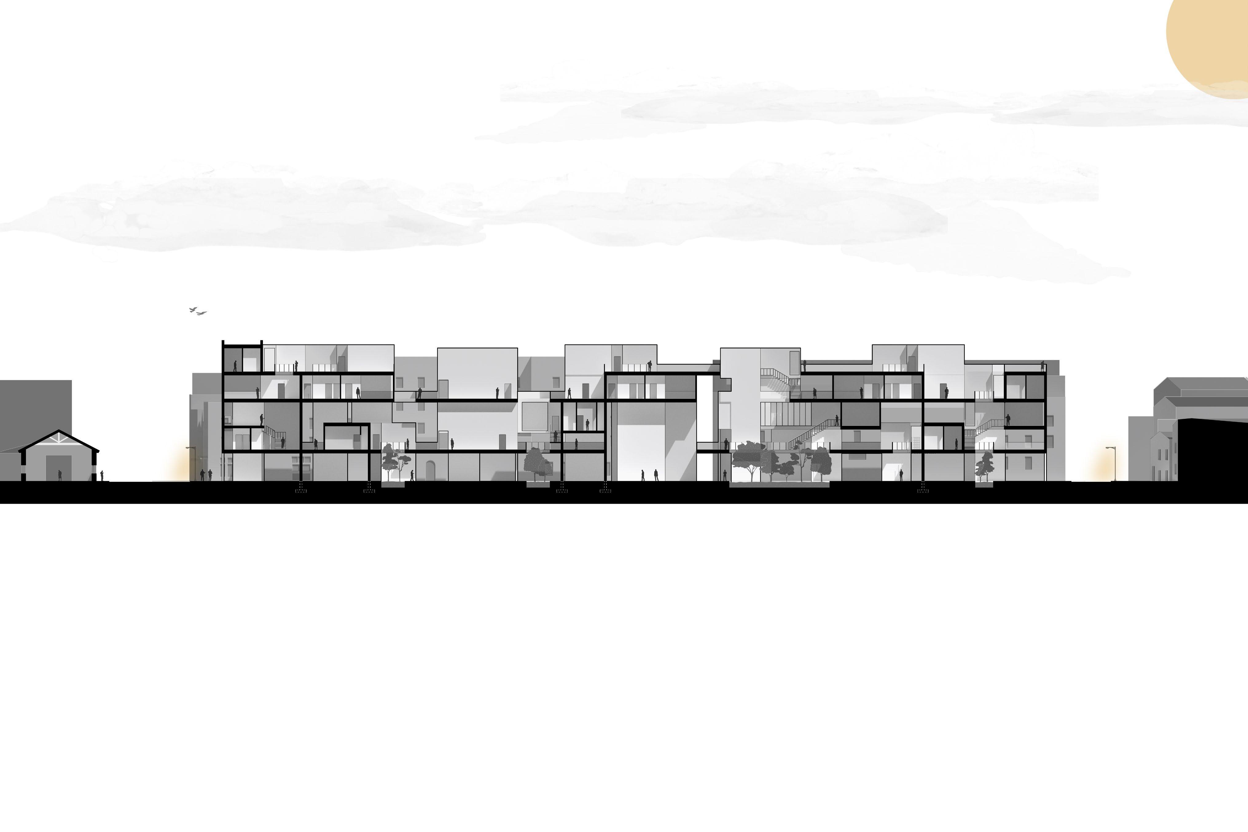 Housing sketches depicting floor layout. Housing connection to Artery.