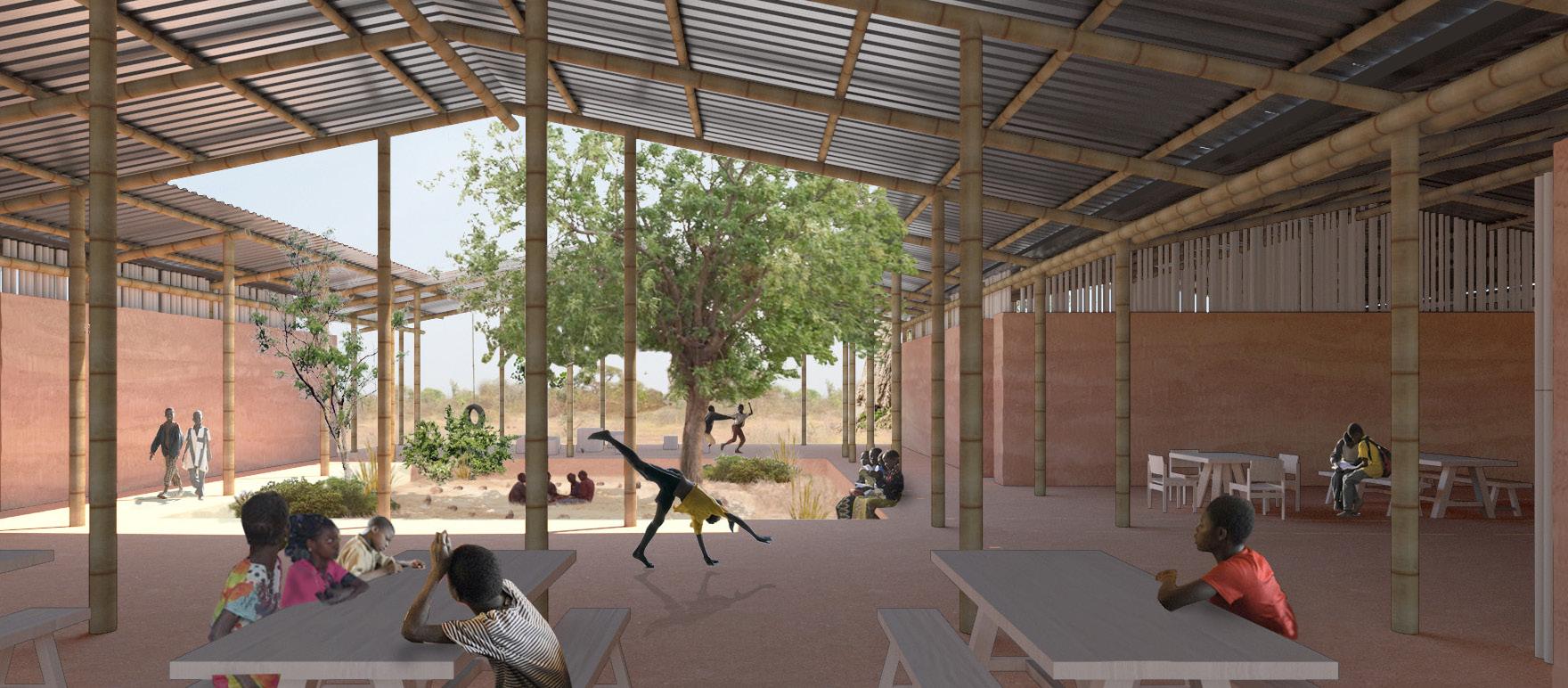 In a place of temporary and seasonal structures, the construction of L’Ecole de la Collectivite establishes an attitude of stability and persistence. The educational environment is kept comfortable through proper ventilation and protection from the sun, while rainwater can be collected and repurposed.