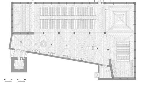 The volume of the exterior differs from the void on the interior in order to create variations in the way the main space is experienced.