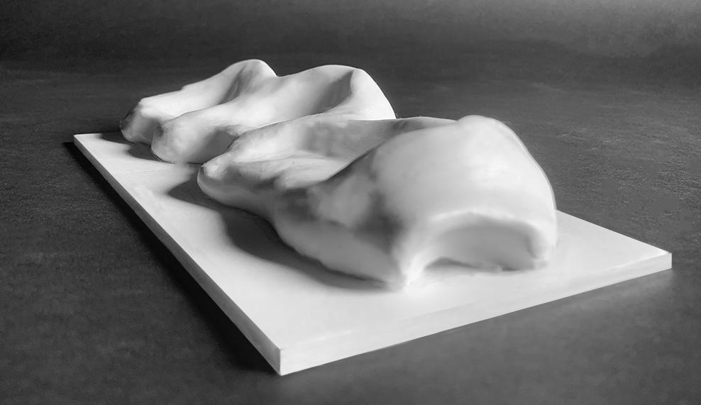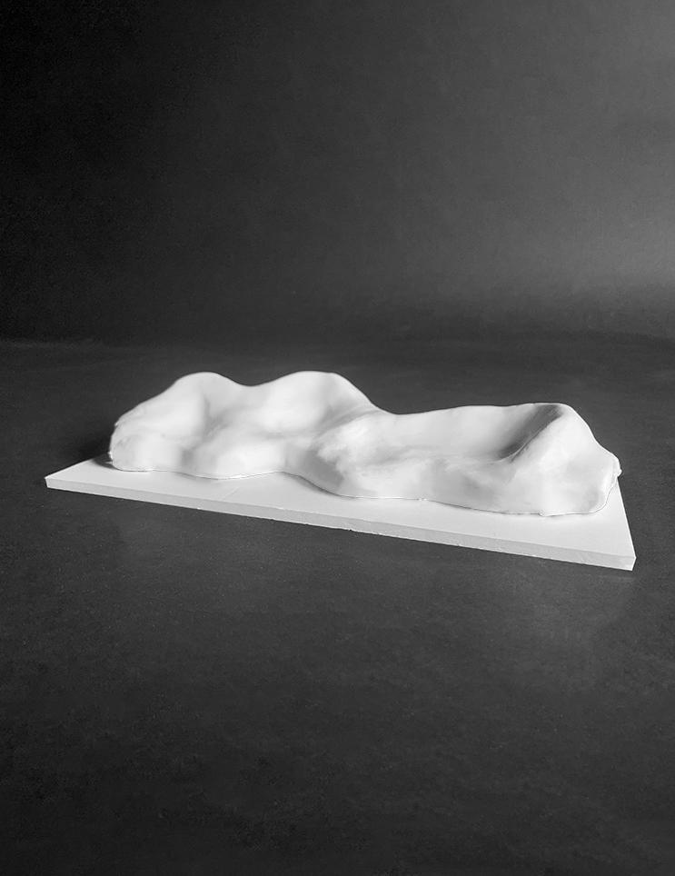 The nodes from the interference pattern create high points, which are carved away to define space for inhabiting the seating device.