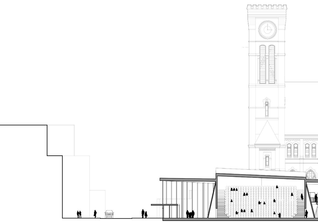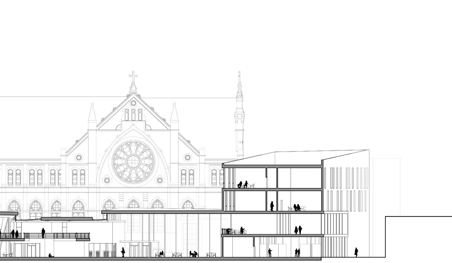 The Cultural Center - at the heart of the “Cultural Network” - is located along the axis of the newly re-established connection between the West End and Downcity, and is directly in dialogue with the adjacent Cathedral.