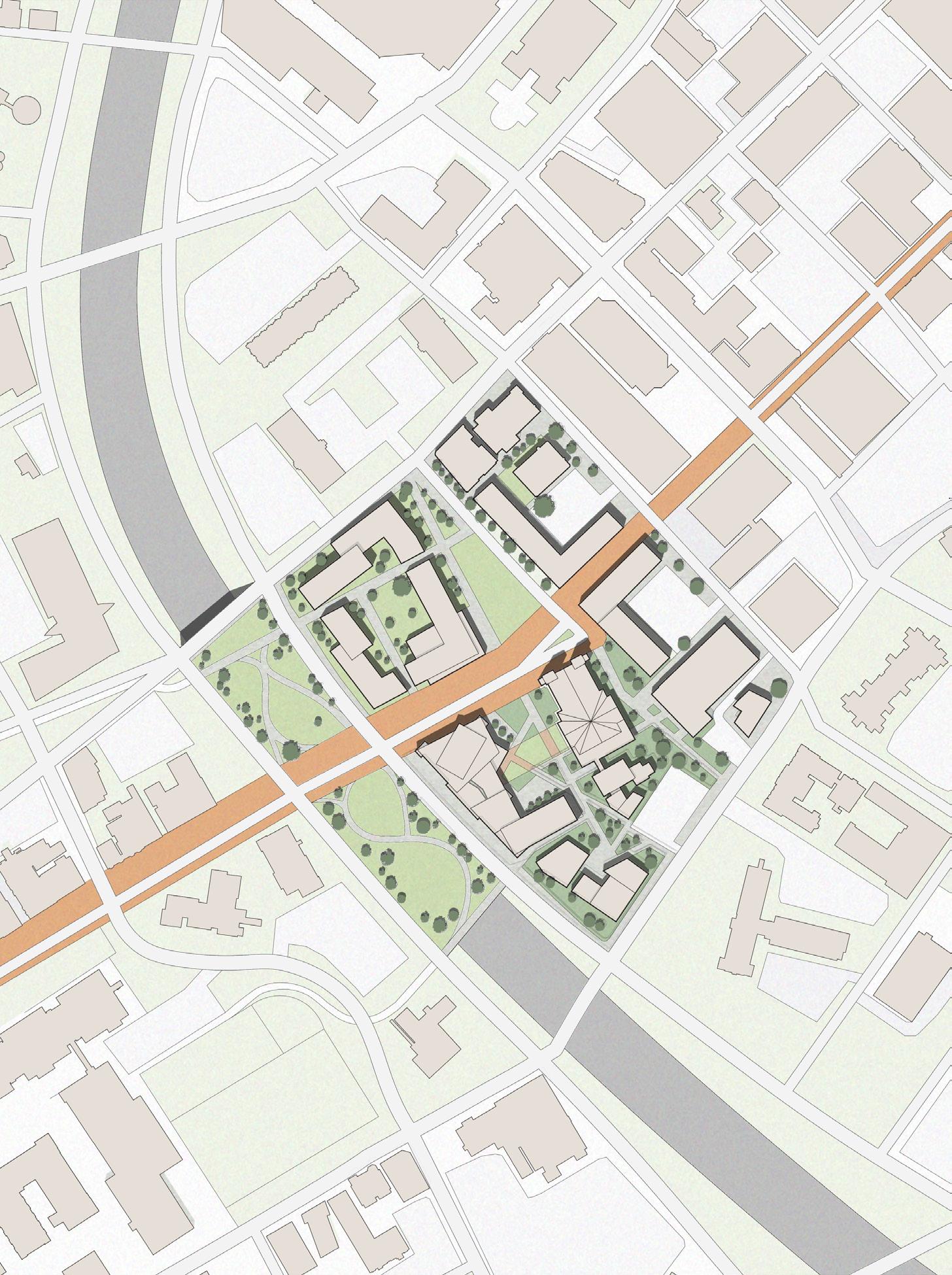 The urban fabric is repaired by creating a “Cultural Network,” connecting various landmarks and institutions. The “superblock” is deconstructed in order to return to intimate urban spaces.