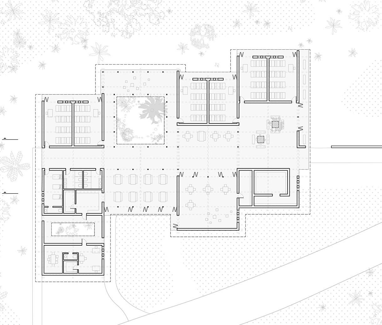 L’Ecole de Collectivite, or “The Community School” seeks to create a model pedagogical environment by establishing a vibrant network of spaces within the school and fostering a relationship with the community beyond. By arranging simple forms derived from the vernacular, the school becomes a lively place of educational and social interaction.