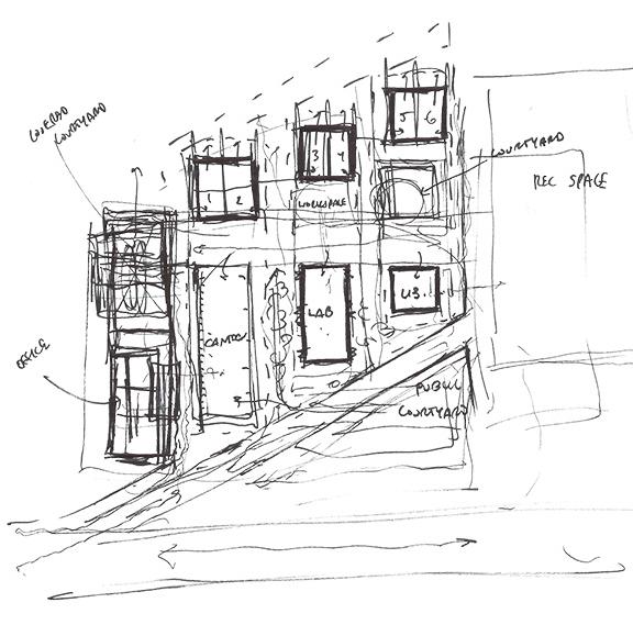 How can a school play a larger role in its community? How does the form of the school influence its relationship to the community and the landscape? What does mean in a place that can go months without rain? H ow can the educational environment be kept comfortable in extreme climatological conditions? W hat does construction look like in a place with limited resources? W hat is the relationship between volume and void?