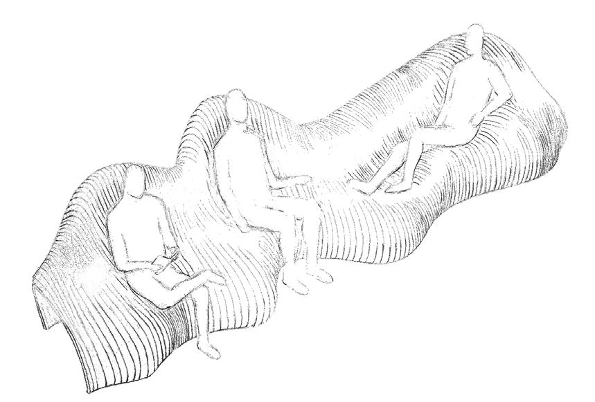 When sound waves interact they create a wave interference pattern, in which the amplitude of the waves both combine with and counteract one another. Waveform Seating is inspired by these nodes of interaction. The constructive interference nodes are carved away to provide space for the human form to occupy the seating device.