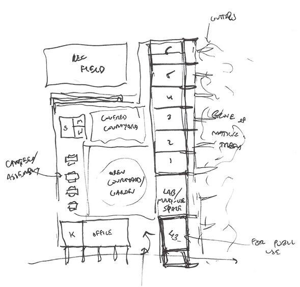 How can a school play a larger role in its community? How does the form of the school influence relationship to the community and the landscape? What does water mean in a place that can go months without rain? H ow can the educational environment be kept comfortable in extreme climatological conditions?