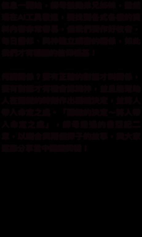 現在AI工具發達,要找到各式各樣的資 料內容非常容易,但我們要作好牧者, 每日靈修、與神建立親密的關係,如此 我們才有穩固的信仰根基!