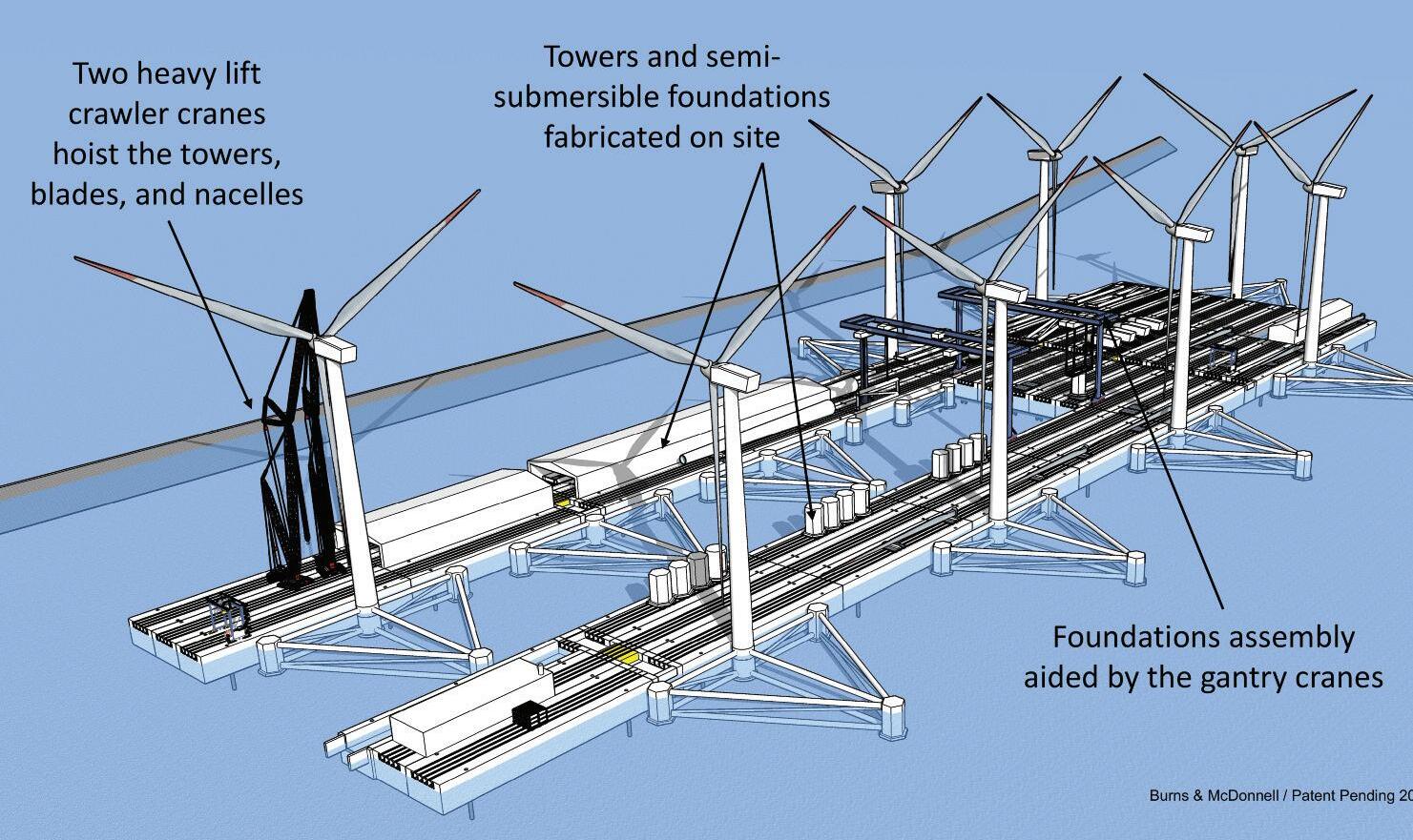 Figure 1: A variation of FASST configured for semi-submersible offshore wind turbine manufacture and assembly