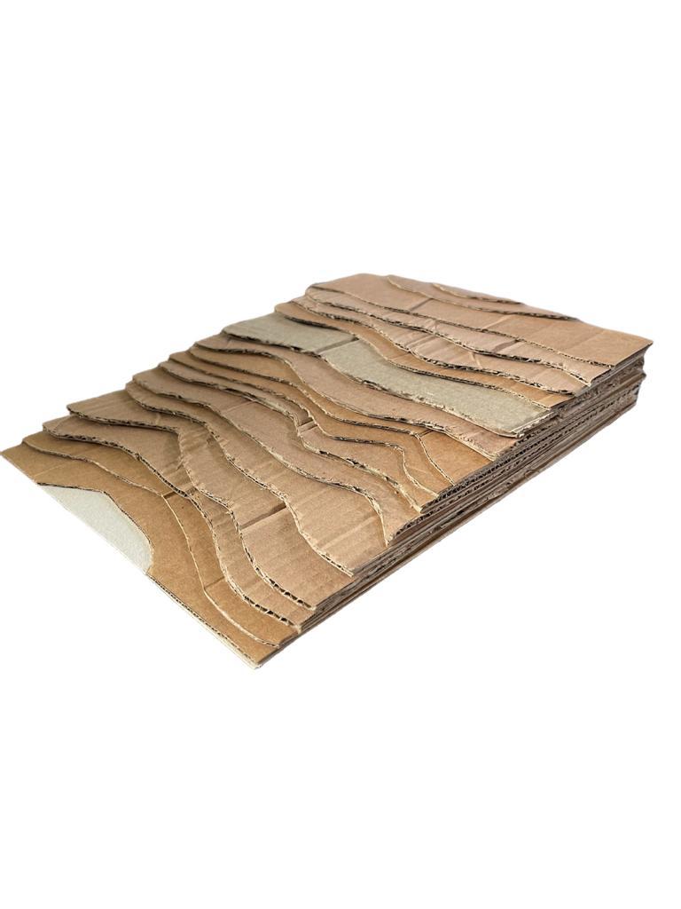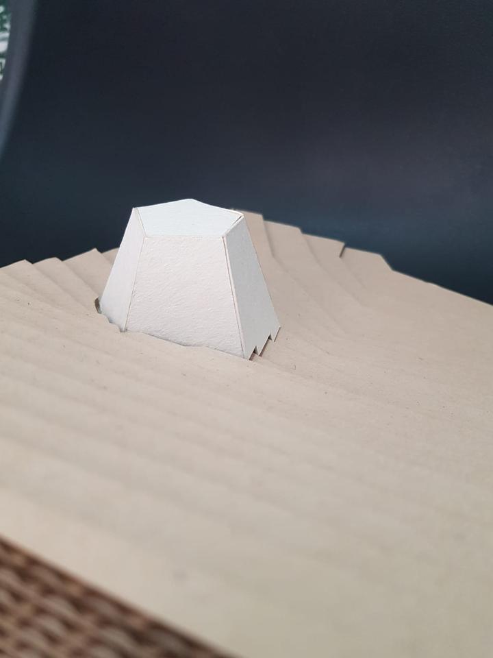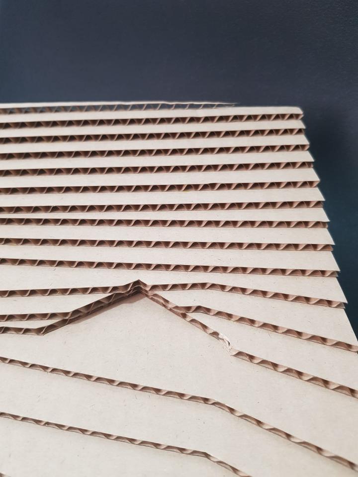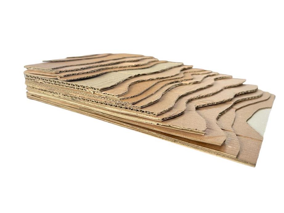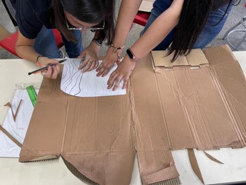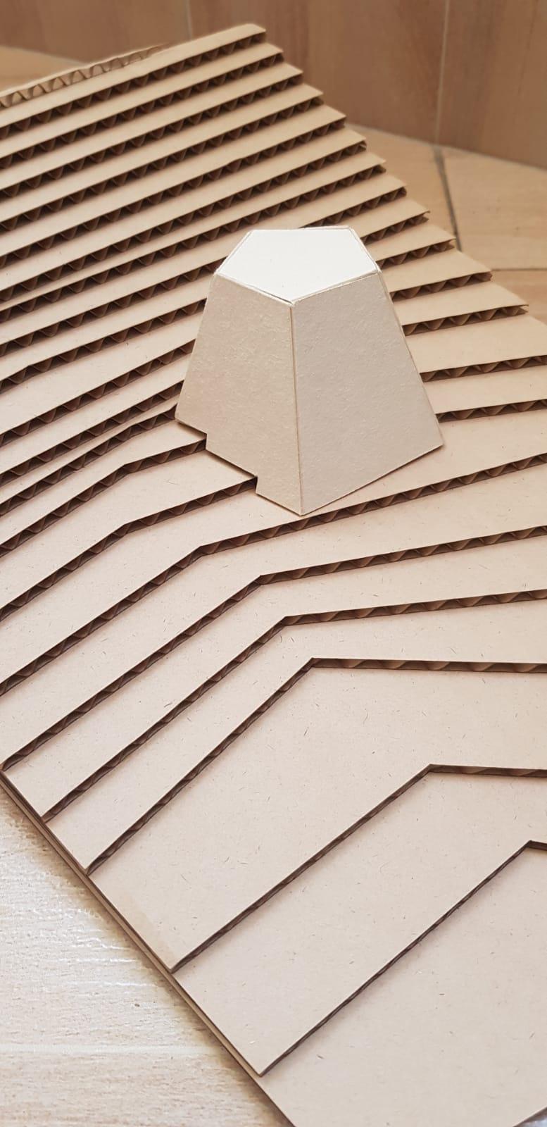 Para finalizar, se dibujaron y cortaron todas las curvas de nivel en el cartón, cada curva es un plano que corta el terreno, y apilándolos todos permitieron la representación del terreno.